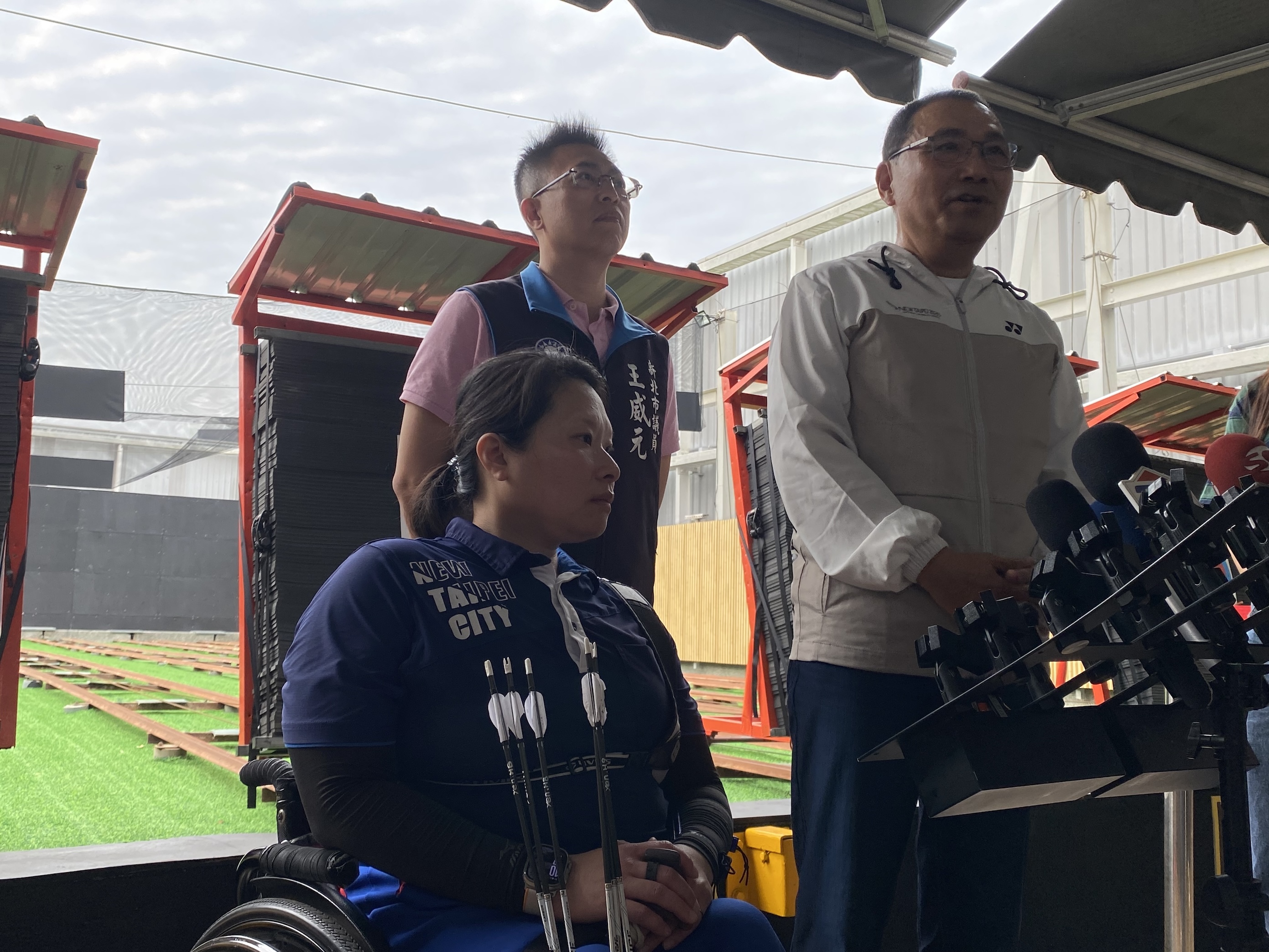 《場館有共融》特教生射箭體驗活動,今天在三重國民運動中心七樓射箭場地進行。侯友宜也與黃貞燕進行友誼賽,現場頻頻傳出歡呼聲,特別熱鬧。