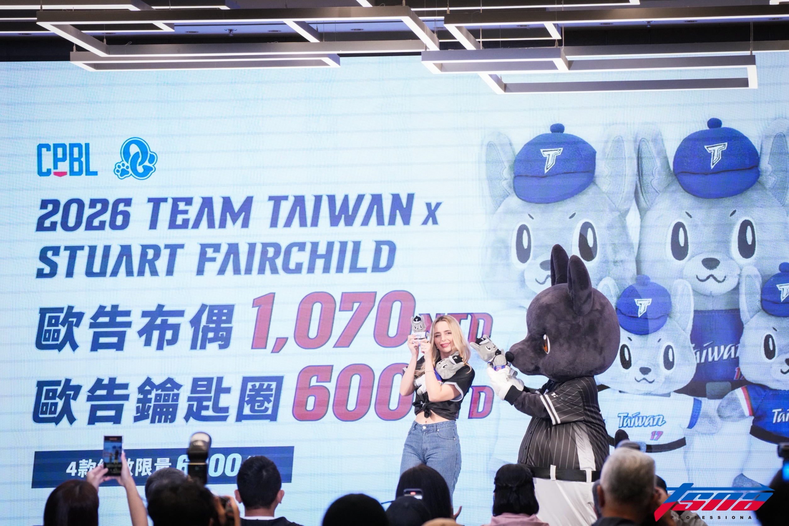 「費仔」Stuart Fairchild的老婆Hanna Fairchild近期來台參與活動,除了替味全龍開球,也與中職人氣吉祥物「歐告」相見歡。7日舉辦的見面會上,更驚喜宣布推出聯名商品,但限量數量讓中職會長蔡其昌苦笑直呼:「我又要被罵了!」
