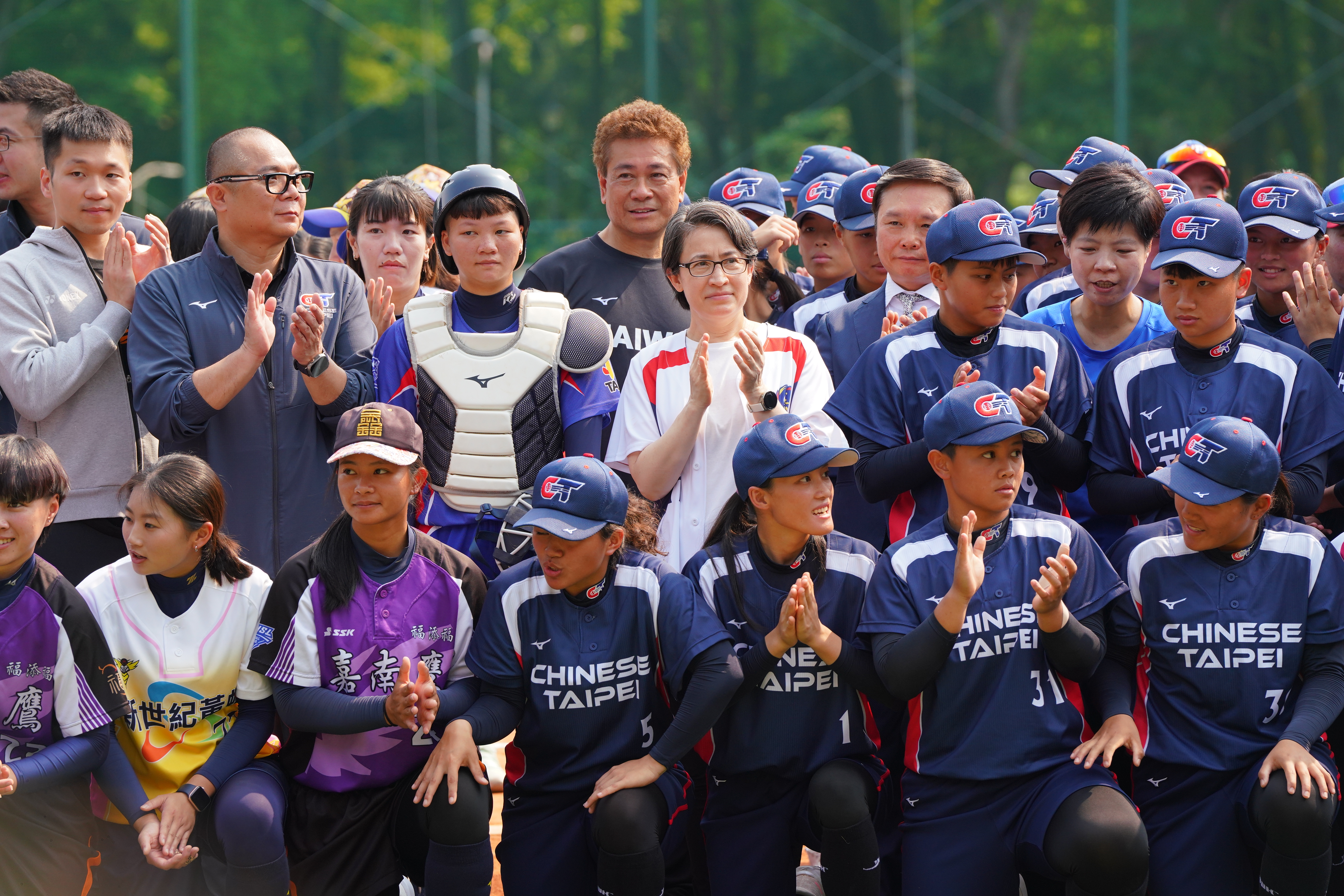 除蕭美琴外,李洋、陳義信也出席企業女子壘球聯賽開幕式。(中華民國壘球協會提供)