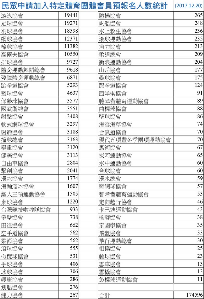 不只是排協,扣除掉今天公布的47個協會中,還有25個協會人數尚未底定,其中又以網球協會、排球協會目前報名人數最多,而黃培閎在上個月也在臉書宣布,他將會參選排協選手理事。