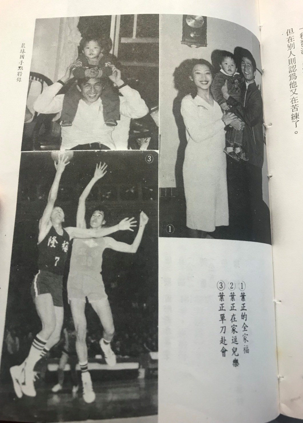 「有時,球隊放假,葉正看完電影回來仍不想睡覺,就會拿個球到球場上獨自投籃,摸索籃球的樂趣。」引自馮同瑜《籃球國手點將錄》