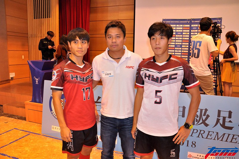 左起航源FC隊長徐宏銍、教練洪慶懷、球員黃士源。(張哲郢/攝)