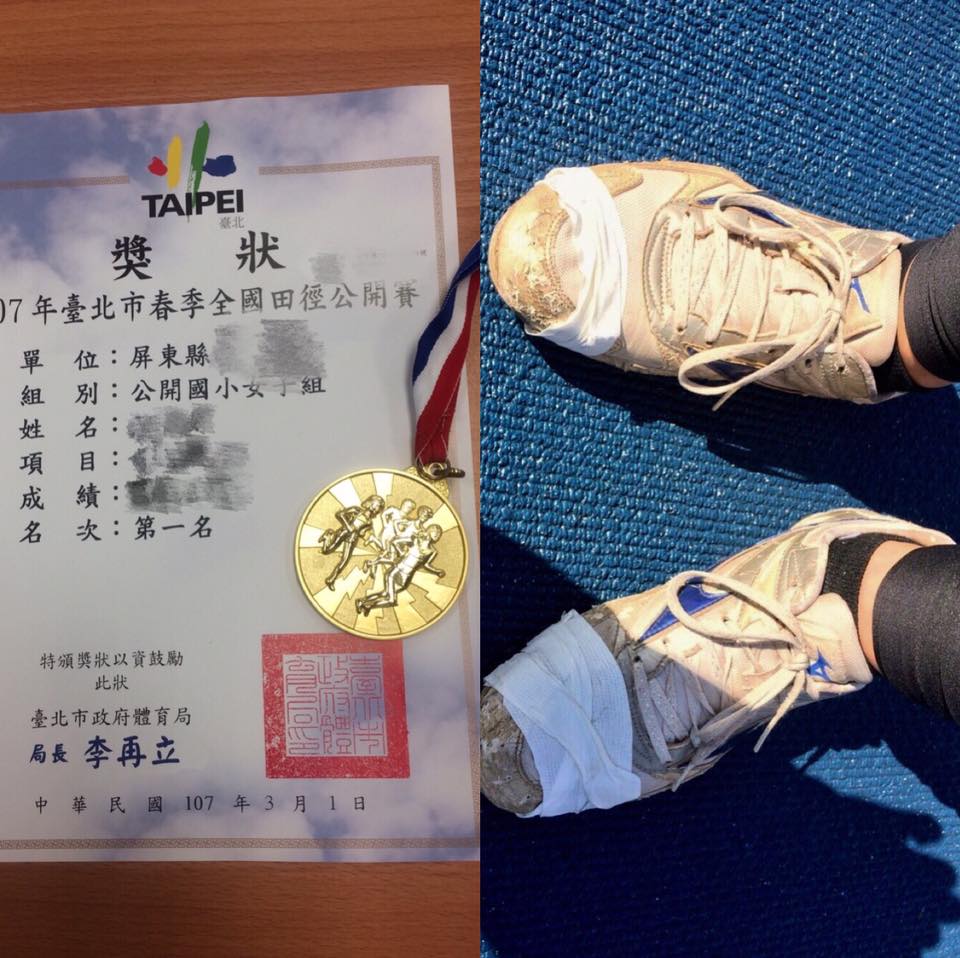 這雙鞋子的主人是戴愛玲心目中的勇者,她穿著這雙必須用膠帶纏緊才不會開口笑的鞋子,勇奪田徑公開賽國小女子組全國冠軍。她以擲壘球替代標槍訓練僅1年多就拿下全國冠軍,物資的匱乏掩蓋不了她耀眼的天賦。這張照片,令戴愛玲深深感到震撼!