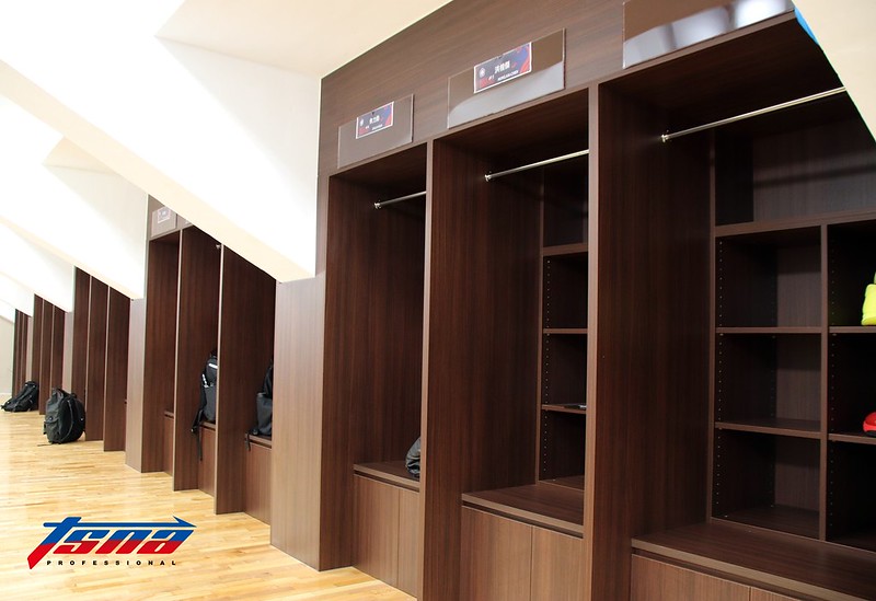令人眼睛為之一亮的是政大雄鷹嶄新的休息室,比照NCAA規格打造,除了有球員個人專屬的大空間置物櫃外,還設有75吋電視以供觀看比賽影片。