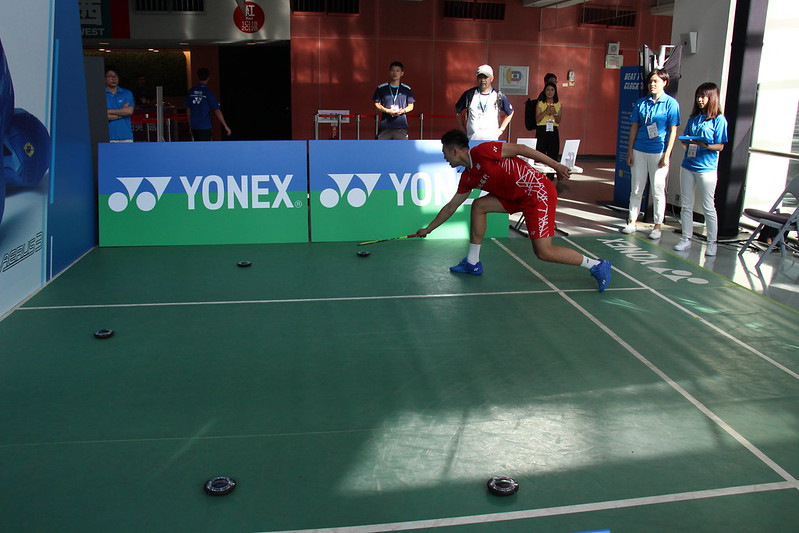 體驗活動分為兩種,分別為殺球「Steep Attack Challenge 」、步伐遊戲「Beat The Clock」;「Steep Attack Challenge」每次有5球的機會,主要測量殺球的角度,越陡直分數則越高;「Beat The Clock」換上Yonex提供的球鞋體驗,現場用跆拳道的護具放在地板上,類似打地鼠的概念,測試跑完一趟步伐的時間。