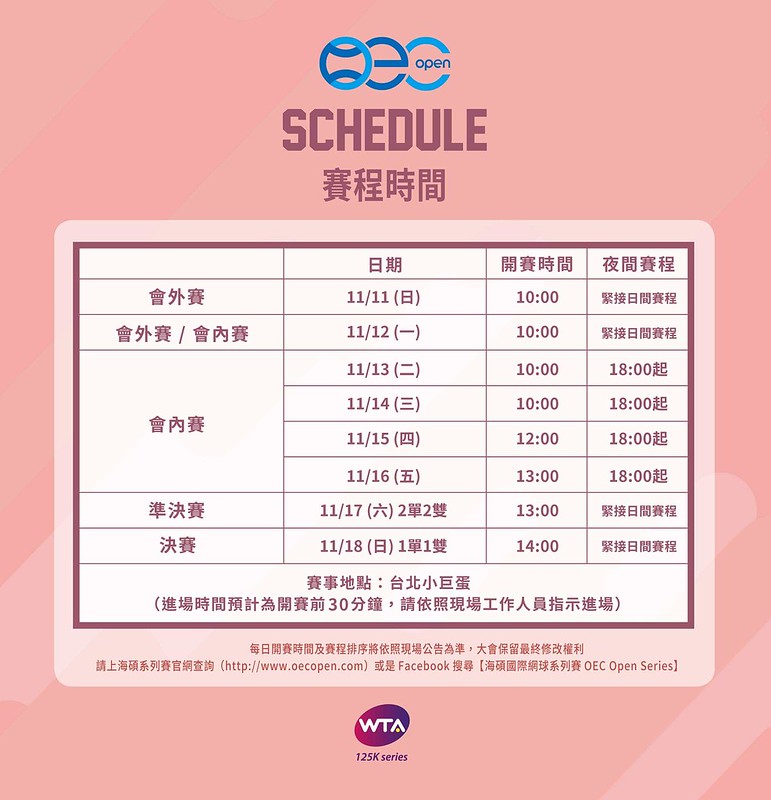 台北海碩女子網球公開賽賽程表。(教育部體育署提供)