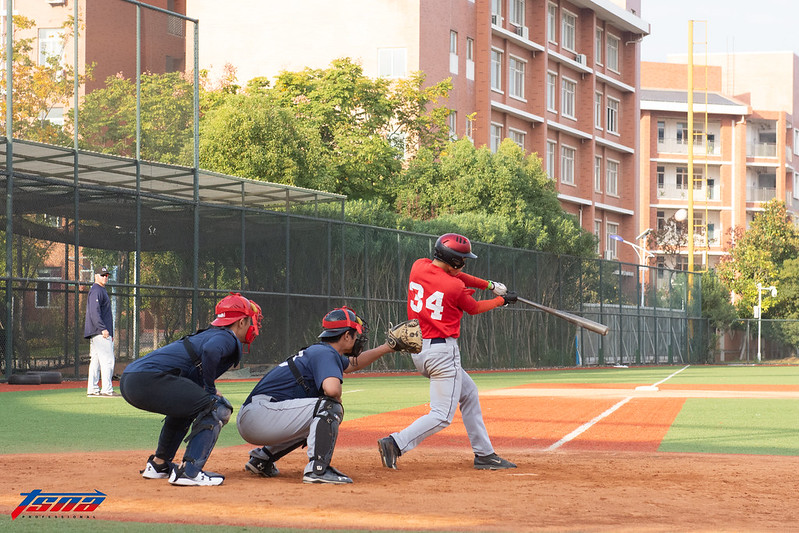 走進東山外國語學校,穿過教室和食堂大樓,迎面而來的是大聯盟的紅白藍三色商標,掛在棒球場的全壘打圍欄上,球場兩邊有簡易的室內打擊練習區、室內牛棚、休息區和觀眾席。為了減少場地養護的成本,除了投手丘以外,整座球場採用人工草皮,只有4個壘包附近鋪上紅土,連警戒區都是土紅色的草皮。訪問的這天是週日,下午教練團安排與來自常州發展中心的二軍球員進行練習賽,也是入冬前最後一場比賽。