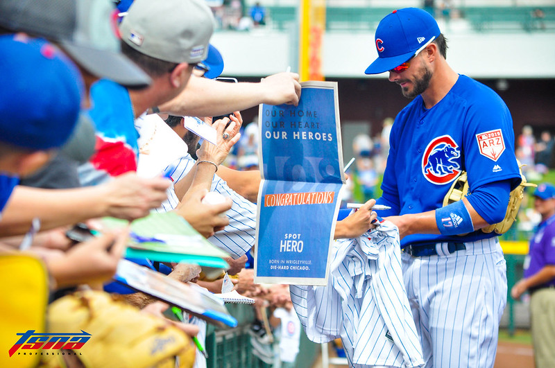 想得到Kris Bryant簽名的球迷數量極大,但他還是會盡可能地幫每個區域的球迷都簽到。(李秉昇/攝)