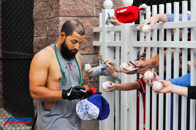 其他在春訓獲得球迷簽名的管道就非常仰賴運氣。有時侯球員會不定期地在能接觸到球迷的管制區外牆幫球迷簽名,不過要發生這樣的情況,除了得有球員剛好走經過球迷伸手可及的通道或欄杆旁,還要球員本身願意聆聽球迷的呼喚,短暫停留滿足球迷的渴望。美國時間3月11日遊騎兵單日進行雙重賽,打晚場的二壘手Rougned Odor就在午場比賽期間,於打擊籠旁邊跟球迷只有一道柵欄之隔的通道,幫球迷簽名。