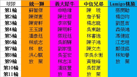 握有狀元籤的統一在第1輪挑中U21國手也是U23培訓隊一員的蘇智傑,第2輪看上也是U23培訓隊的陳傑憲,而義大犀牛和中信兄弟首輪都挑選高中生,而U23培訓隊當家捕手張閔勛則被Lamigo桃猿選中。