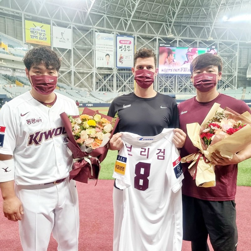 歷經14天的隔離,前味全龍王牌布里悍(Jake Brigham)昨天正式「出關」,今(14日)所屬球團韓職(KBO)的Kiwoom英雄特別為他舉辦「驚喜歡迎儀式」,讓布里悍直呼,感覺像與家人見面。