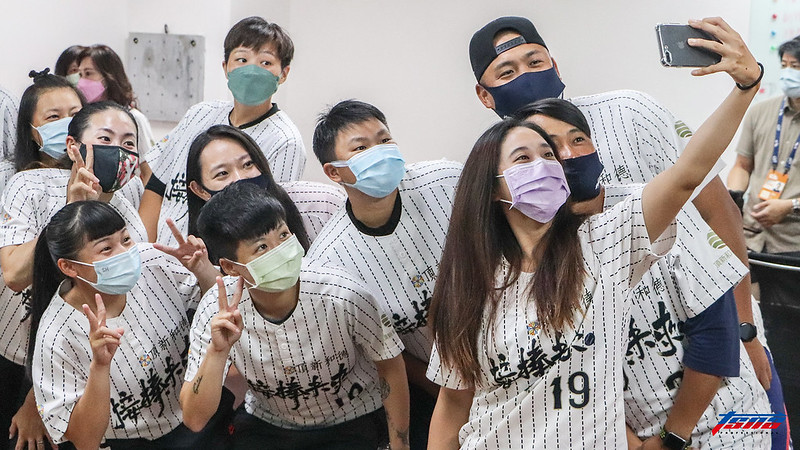 接棒未來女子棒球隊自拍。(攝影記者李政穎/攝)