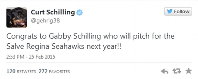 就像每一個以女兒為榮的爸爸,Gabby的爸爸興奮地透過推特宣布了這則消息。這原來是一件很單純的小事,除了Gabby有個大名鼎鼎的爸爸,就是曾得過世界大賽最有價值球員,擁有三座世界大賽冠軍的強投Curt Schilling,而他的推特有超過12萬人追隨。