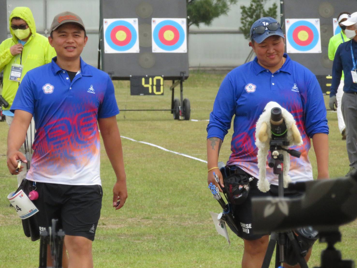 陳界綸(左)與黃逸柔(右)明日爭奪射箭世界盃光州站複合弓混雙金牌。(中華民國射箭協會提供)
