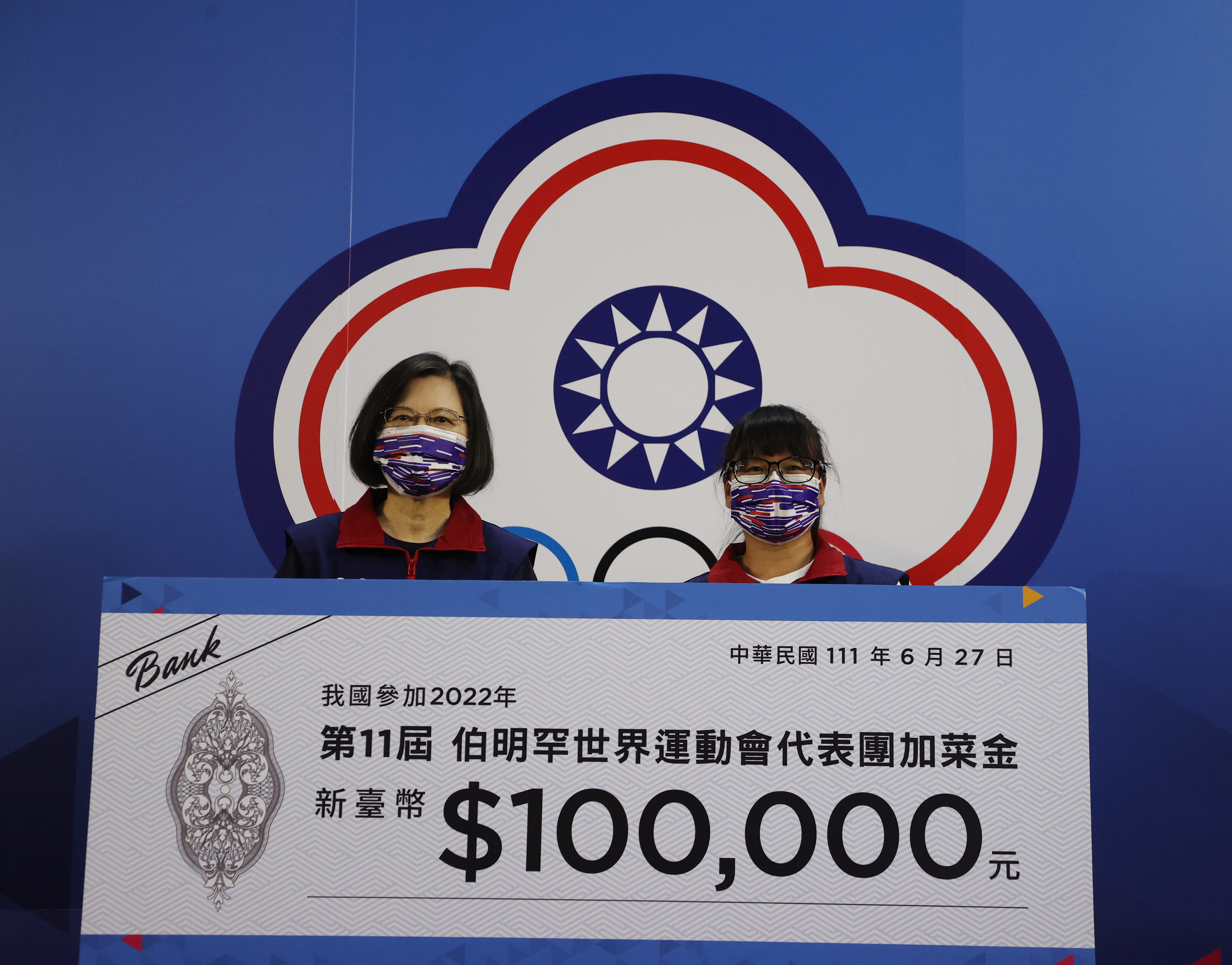 從總統手中接過加菜金的選手代表、女子拔河隊李洳君說:「非常感謝總統百忙之中還來給我們鼓勵,我們也會盡全力去迎戰每一場比賽,希望可以獲得好成績。挑戰五連霸壓力是一定會很大,我們會把平常的訓練發揮得最好。」