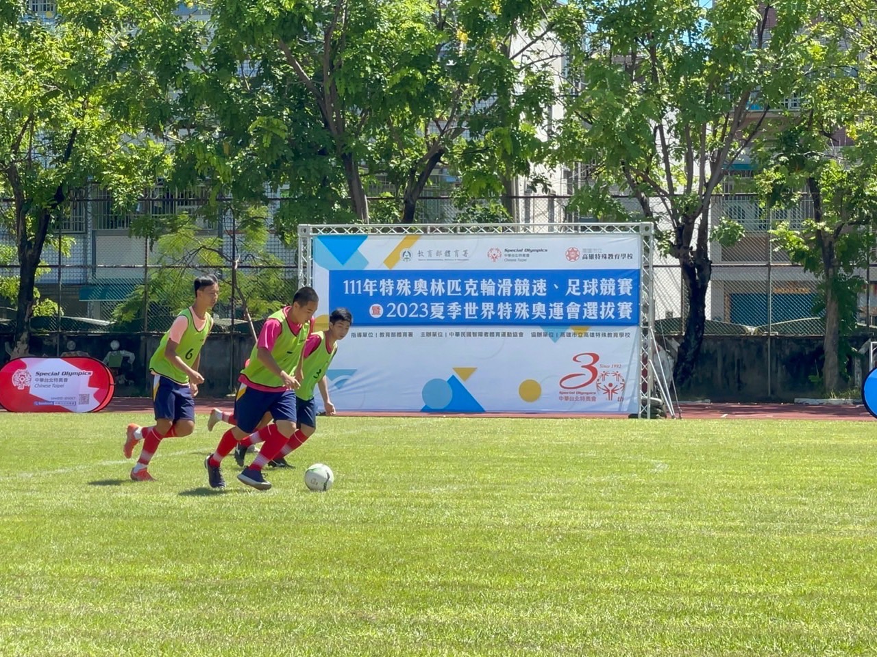 依照特奧比賽規則,足球今日是能力評估分組賽,透過評估每位選手今日表現,再重新分組,明日決賽時讓能力相當的選手在同組比賽。