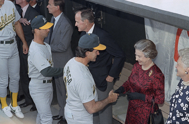 備註:女王在1976年曾經訪美,當時已經從選手身分退休的Willie Mays受邀出席國宴,曾經在國宴中晉見女王陛下。