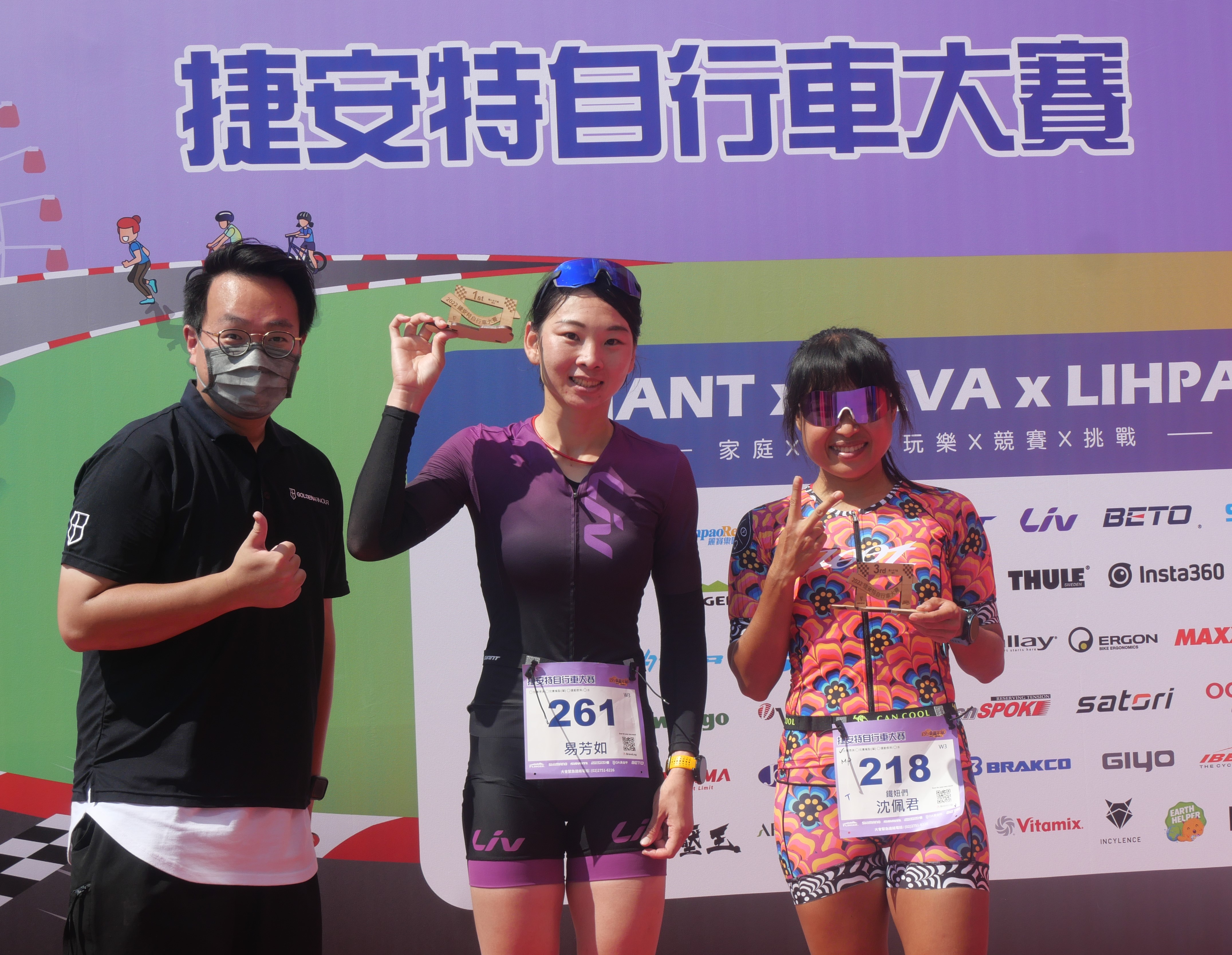 已經多年沒比賽的前亞運國手易芳如(中)輕鬆拿下女子總排第一。捷安特提供
