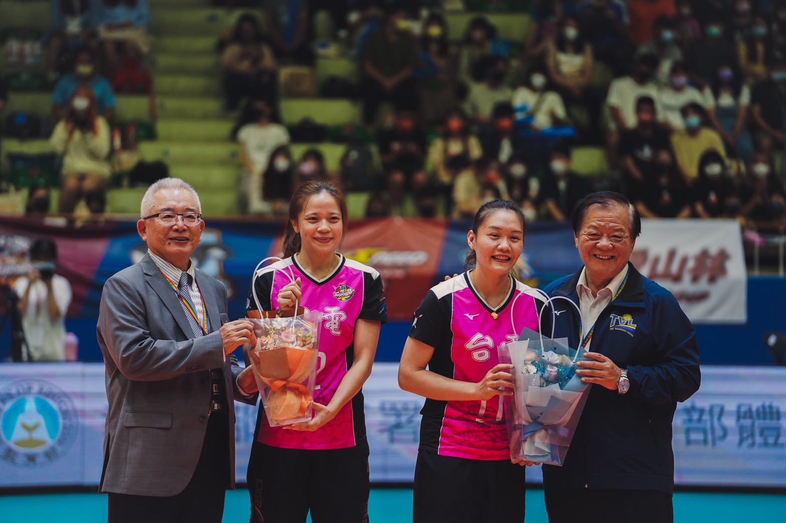 謝苡縥(右2)、楊孟樺(左2)引退。(企業排球聯賽提供)