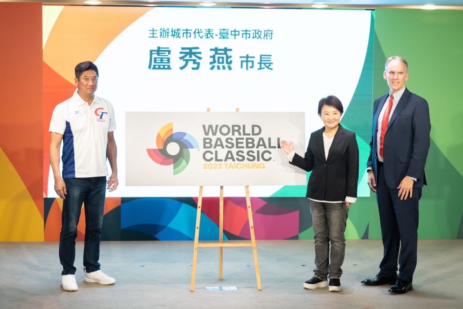 經典賽今天在台中市政府舉辦啟動記者會,臺中市市長盧秀燕、中華民國棒球協會理事長辜仲諒、中信銀行董事長利明献出席活動,世界棒球經典賽總裁Jim Small特地來台參與。