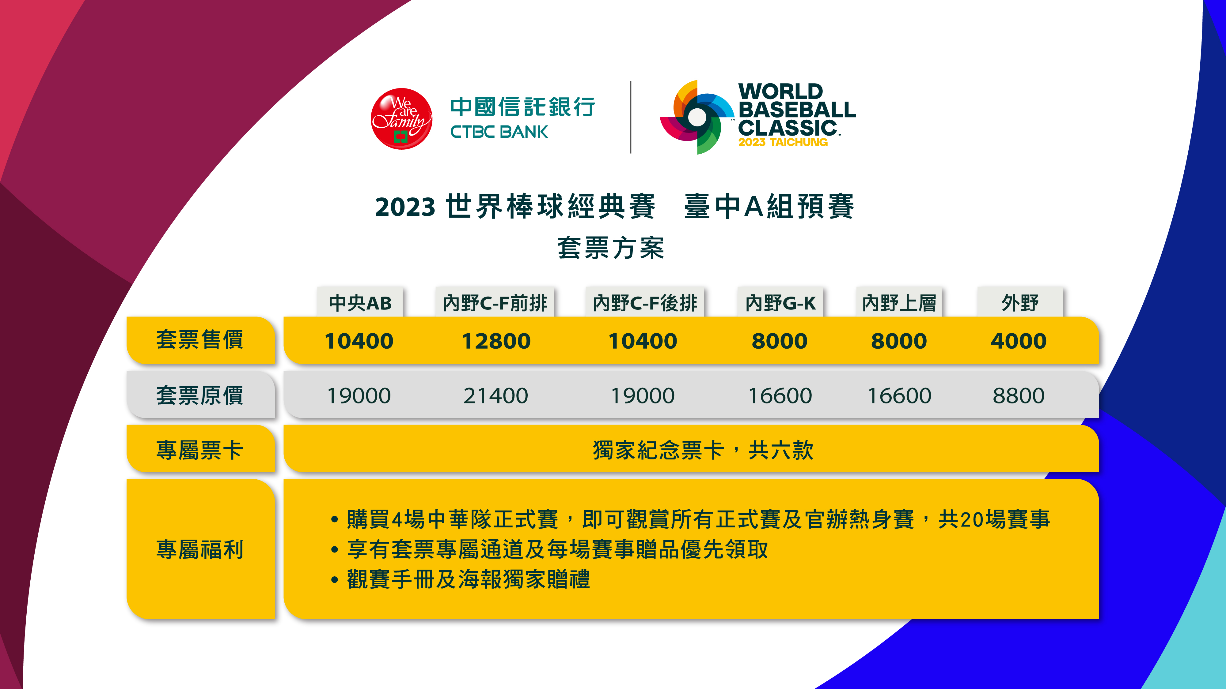 2023世界棒球經典賽(WBC)台灣區預賽,今天(16日)套票開賣,中國信託卡友搶先預購,500組套票搶購一空。