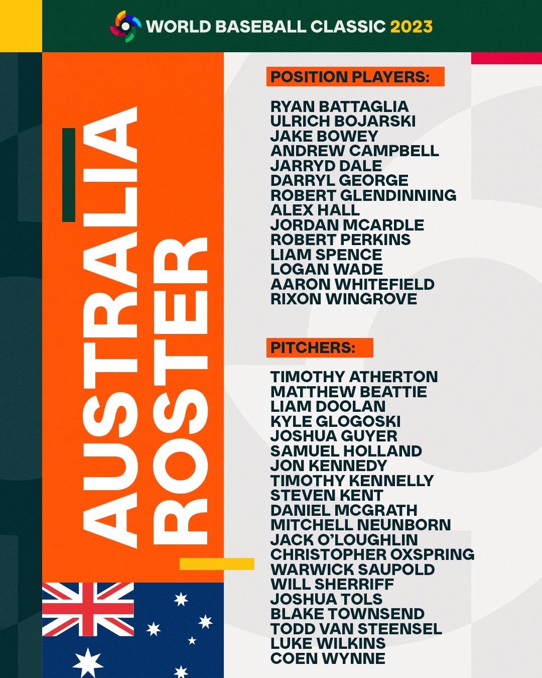 澳洲隊陣容。(取自WBC官方Twitter)