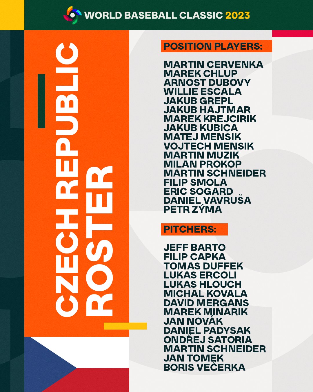 捷克隊陣容。(取自WBC官方Twitter)