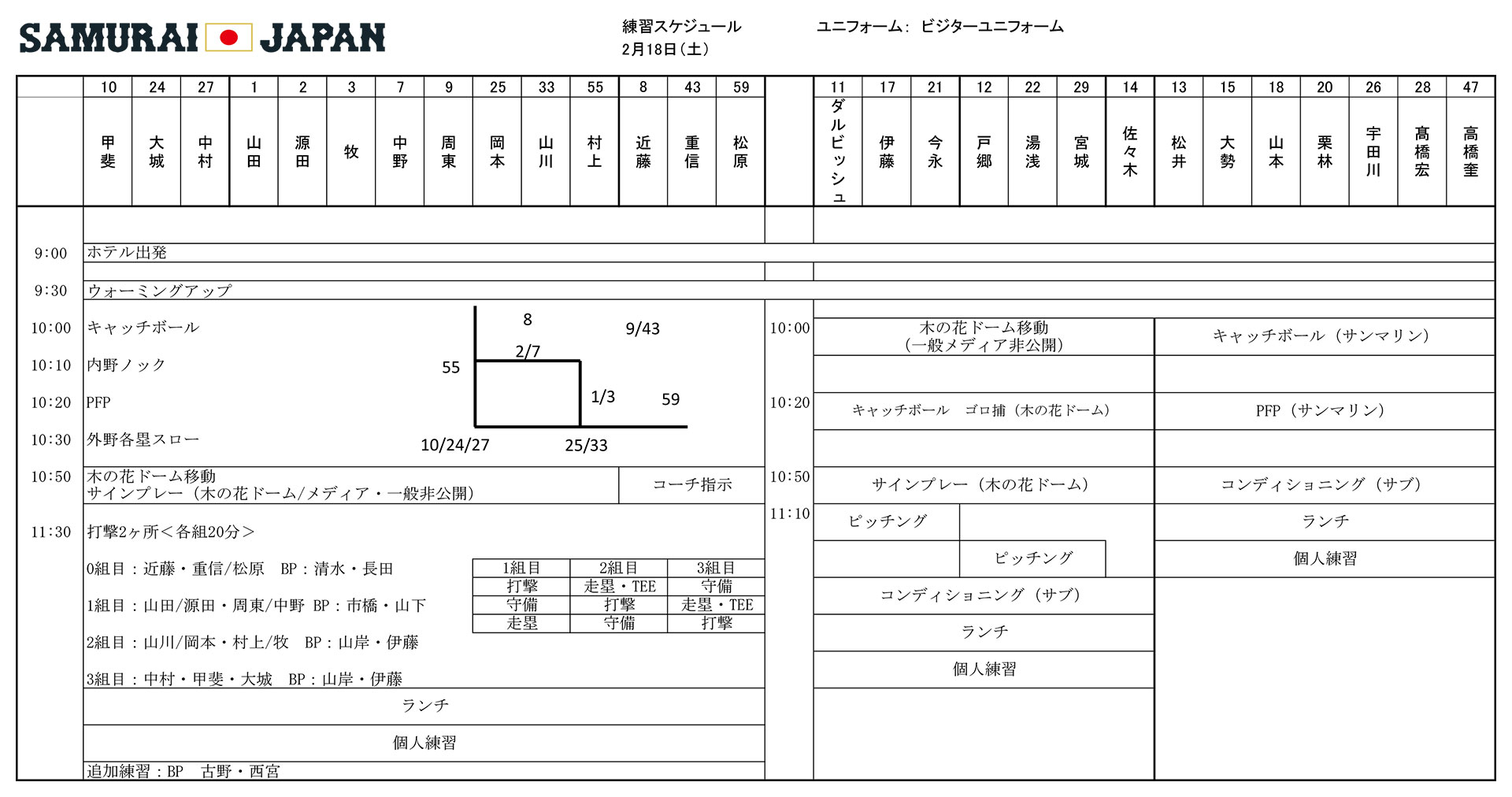 日本隊訓練行程表。取自侍日本推特