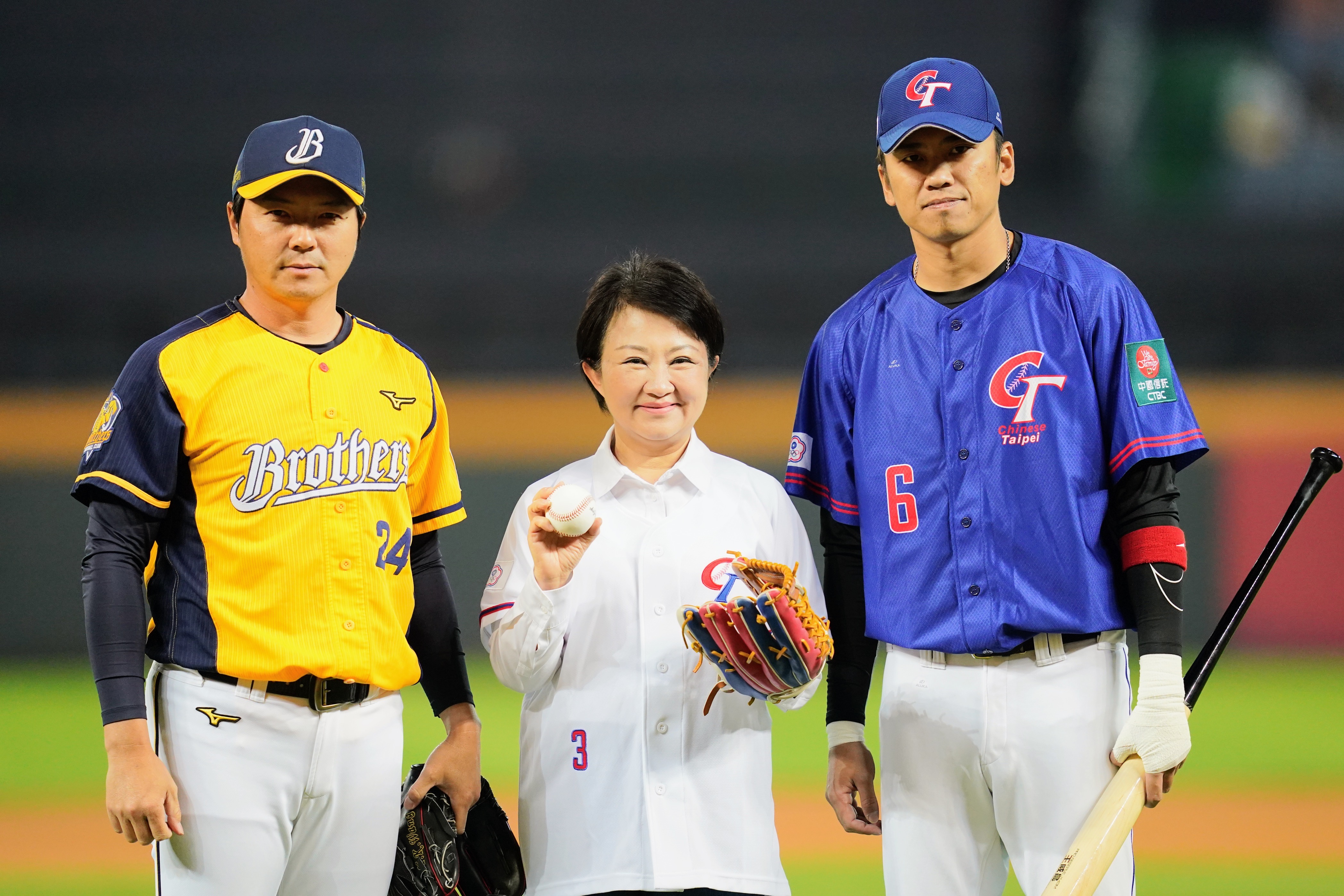 今(5日)中華隊對中信兄弟官辦熱身賽前,請來台中市長盧秀燕開球,特別的是,接球捕手是中信兄弟總教練林威助、打擊是中華隊長王威晨。林威助打過前2屆經典賽,他表示,印象最深刻是當時有收到大會送的經典賽手錶當紀錄,現在還有留著,有機會可以跟各國好手對戰。