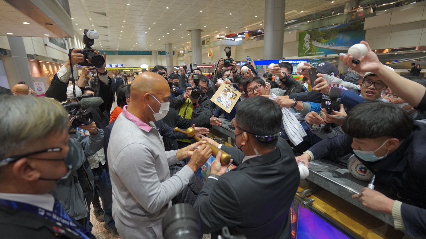 今李維拉抵台,大批球迷前往接機,超有親和力的他,當場在機場開起簽名會,有球迷拿斷棒給他簽,還有球迷會著王建民40背號球衣秀給李維拉看。