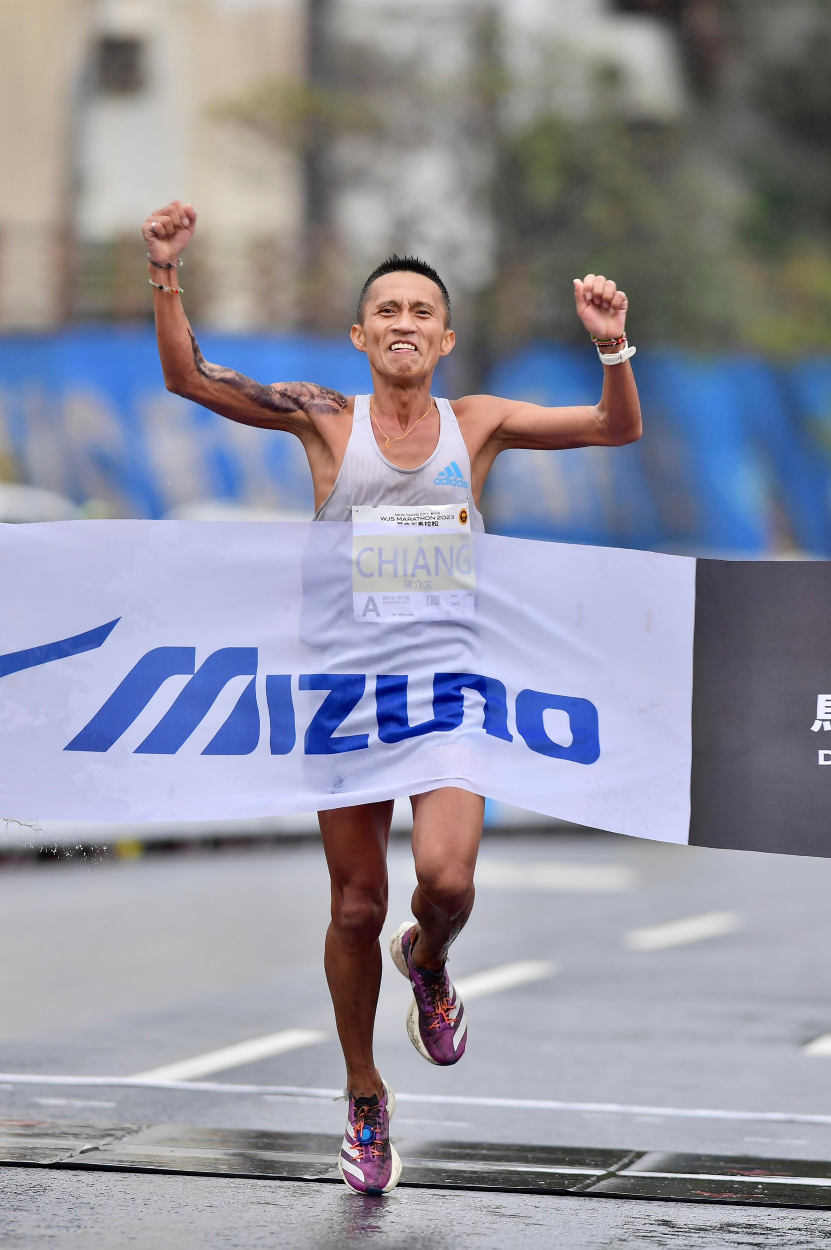 2023新北市萬金石馬拉松今天(19日)由新北市長侯友宜與世界田徑總會觀察員Alessio Punzi、教育部體育署長鄭世忠、中華民國田徑協會理事長葉政彥等人,在萬里翡翠灣為1萬1000名跑者鳴槍起跑,蔣介文、雷理莎分別獲得國內男女冠軍。