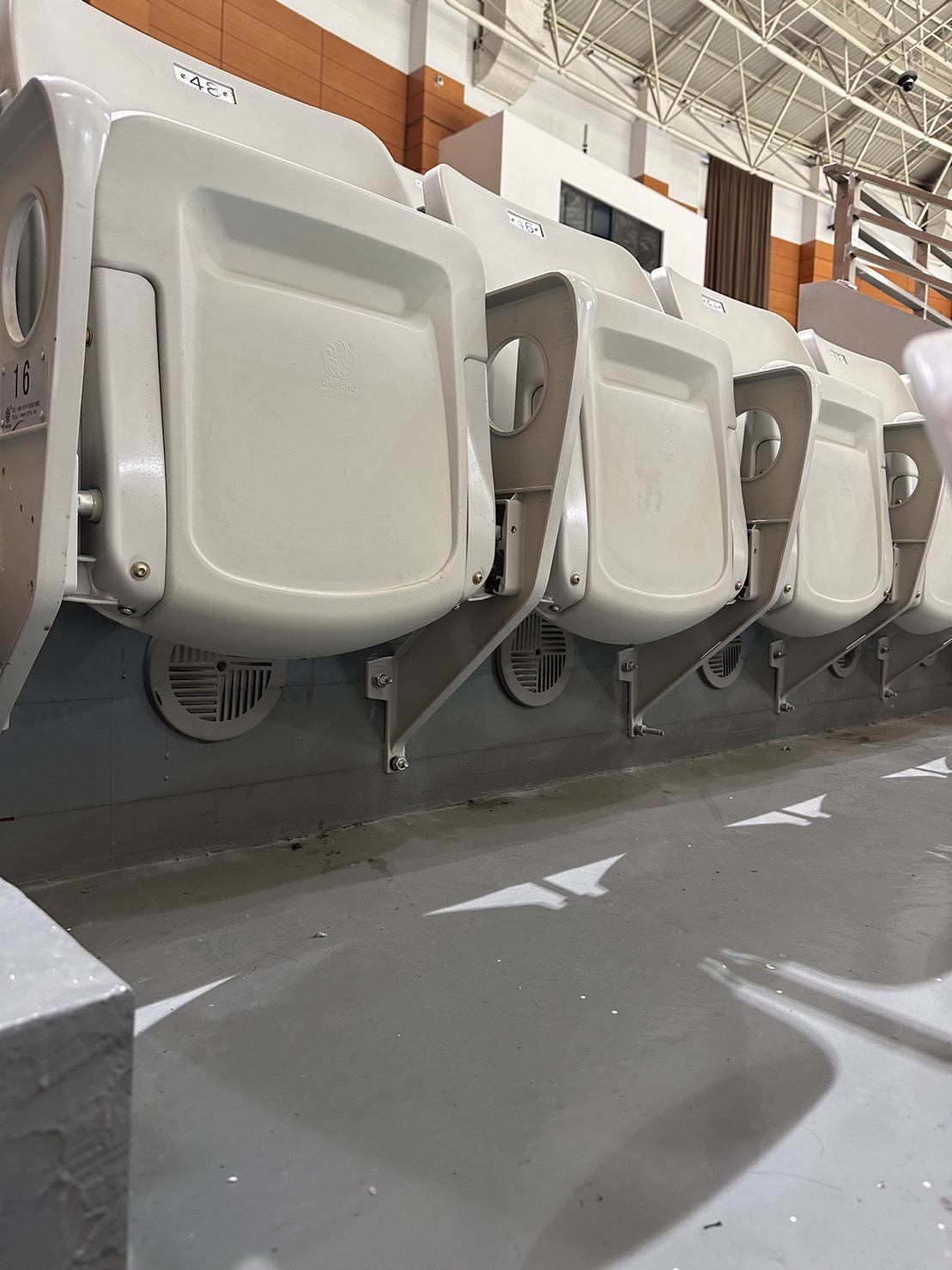濱江體育館空調出風口均設置在觀眾席座椅下方,具體會對球場風向造成何種影響仍須選手臨場適應。(林函頴/攝)
