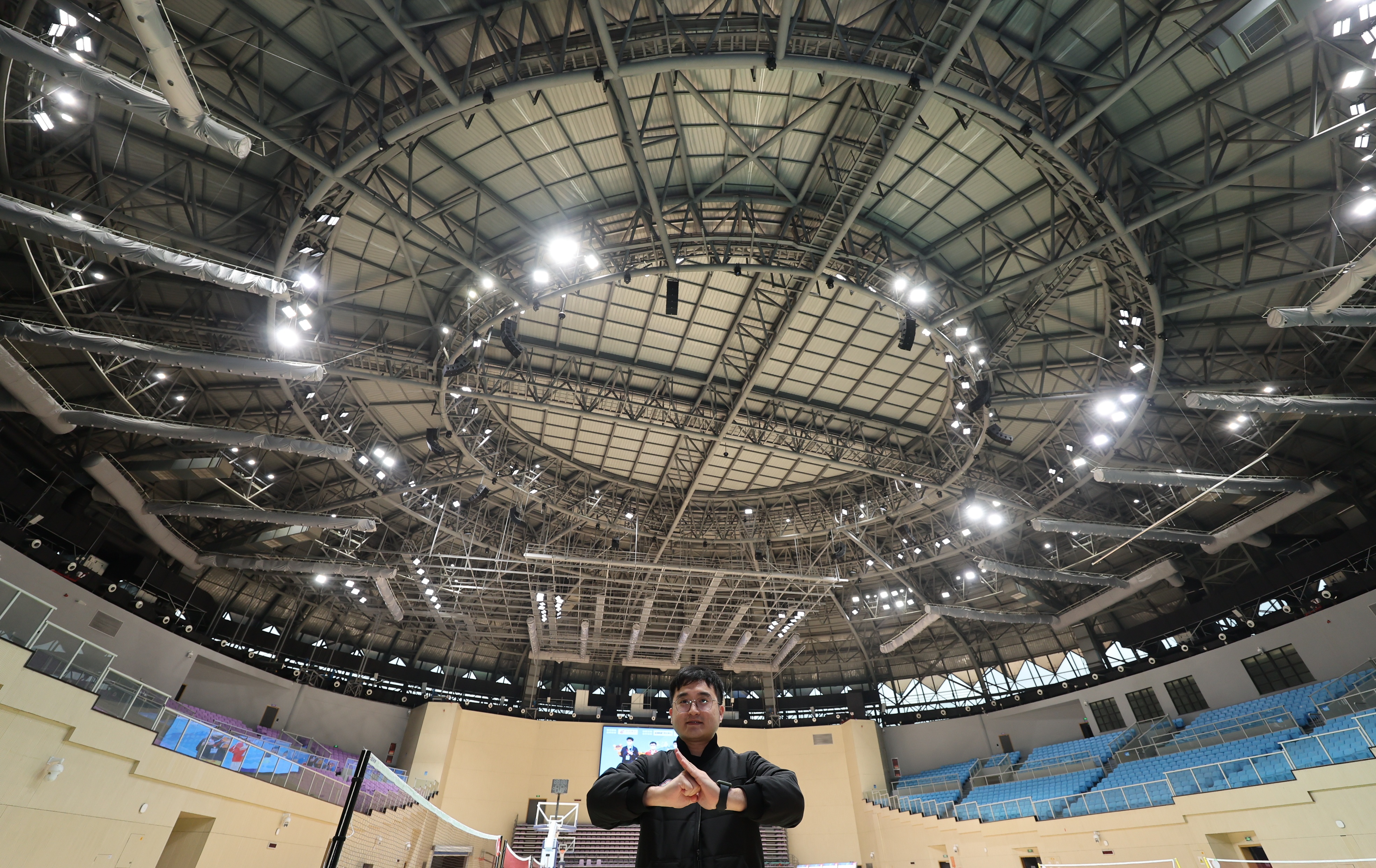 杭州亞運中華賽前考察團今(24)日先後勘查羽球、武術、卡巴迪、舉重、柔道、克拉術等比賽場地,其中羽球場館「小白碗」濱江體育館4面球場、照明已就定位,現場負責人員表示,將會在場館4個入口屏蔽自然氣流進入,內部空調出風口全都設置在觀眾席座位下方,不過具體比賽時風向雖可確保符合競賽標準,仍需選手臨場適應。