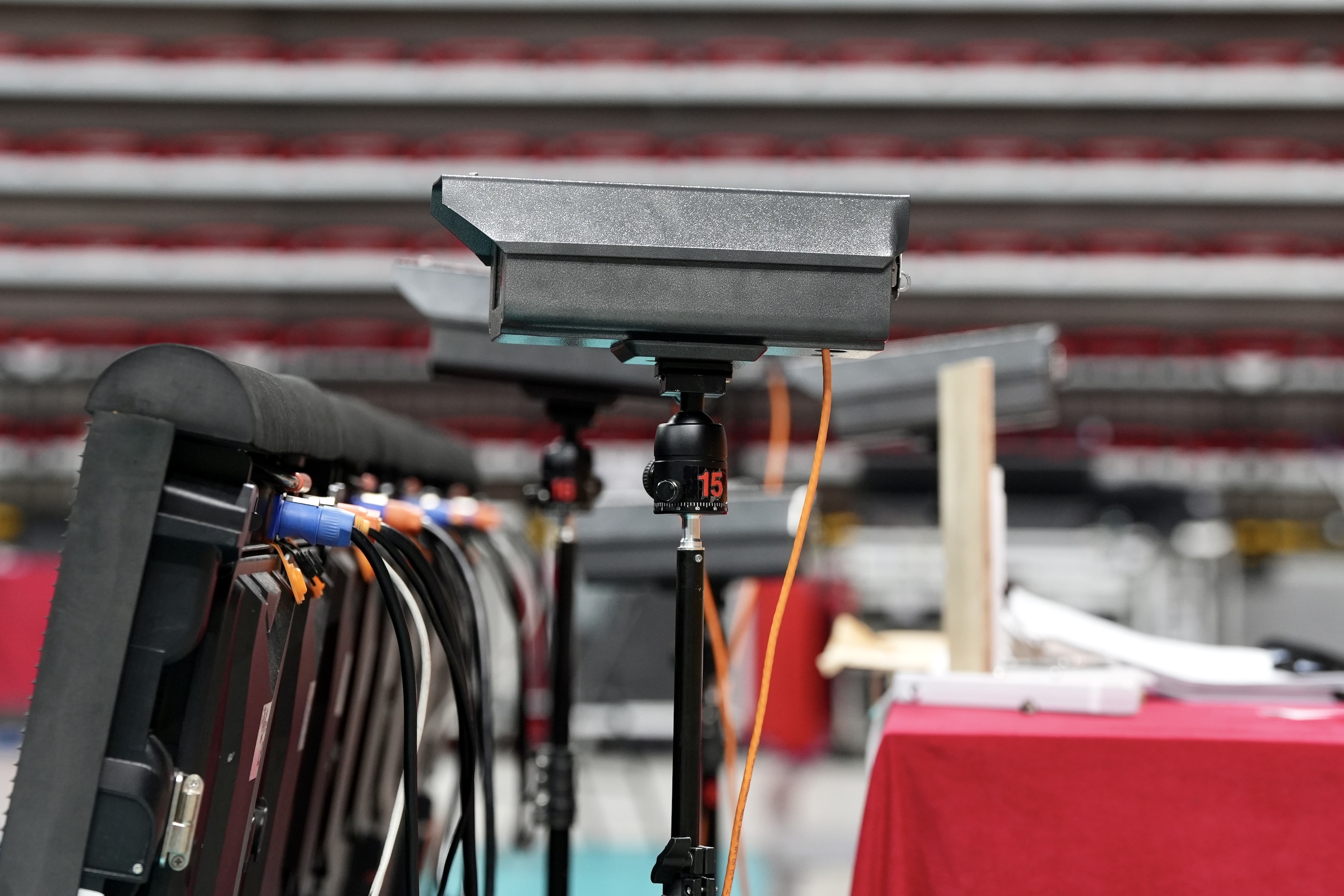 場邊「鷹眼」攝像器材。(李宇政攝)