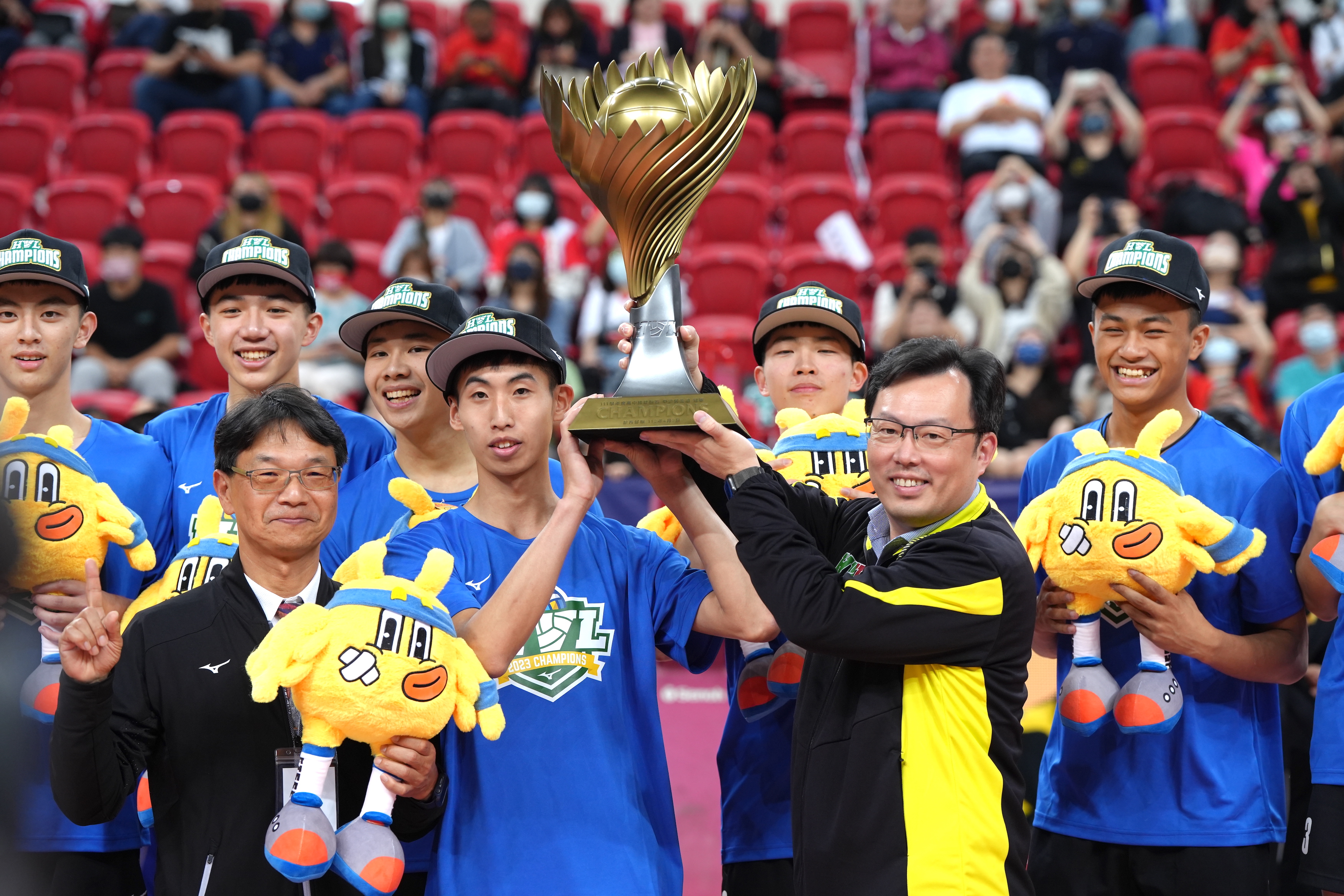 華僑高中在HVL封王,體育署長鄭世忠(右)頒發獎盃。(李宇政攝)
