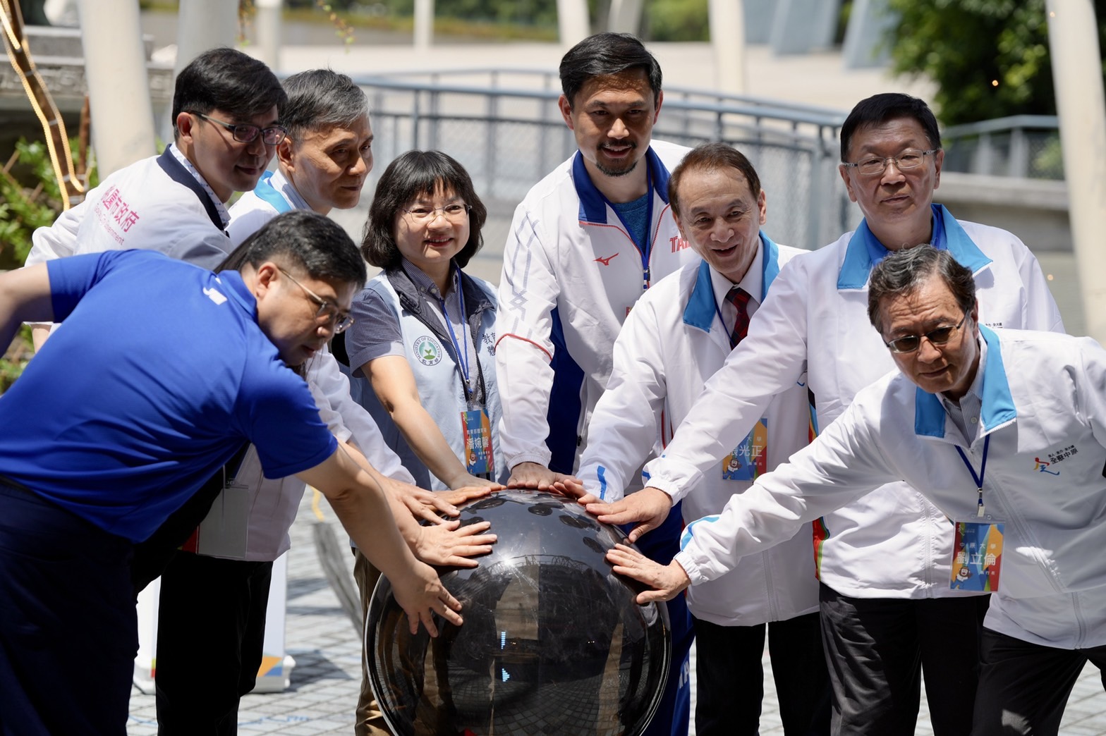 中原大學、教育部體育署、全國大專校院運動總會與臺北市、桃園市體育局代表啟動聖火點燃。(李宇政/攝)