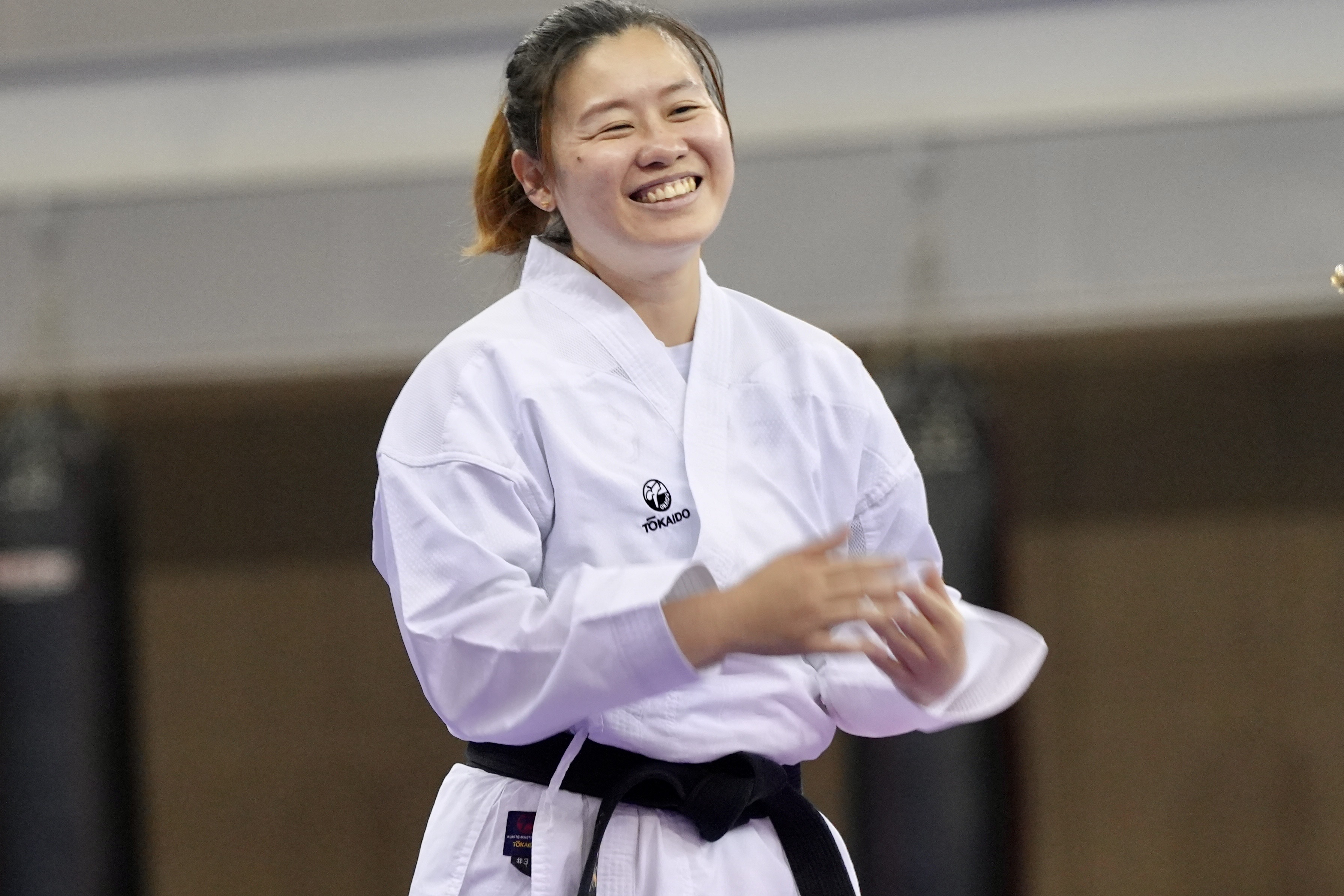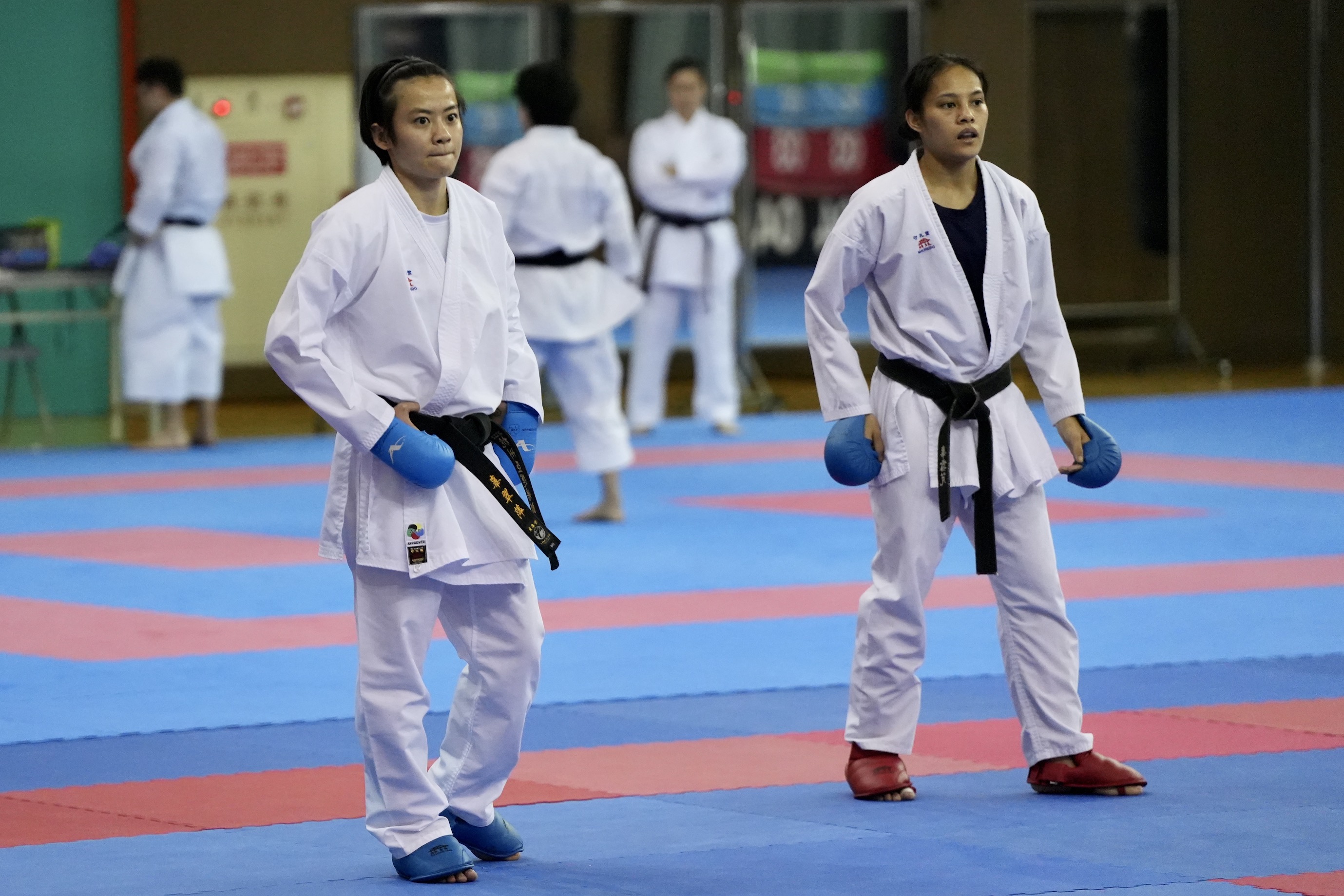 國家運動訓練中心今天舉行媒體日活動,讓媒體拍攝、訪問杭州亞運空手道隊訓練情形。