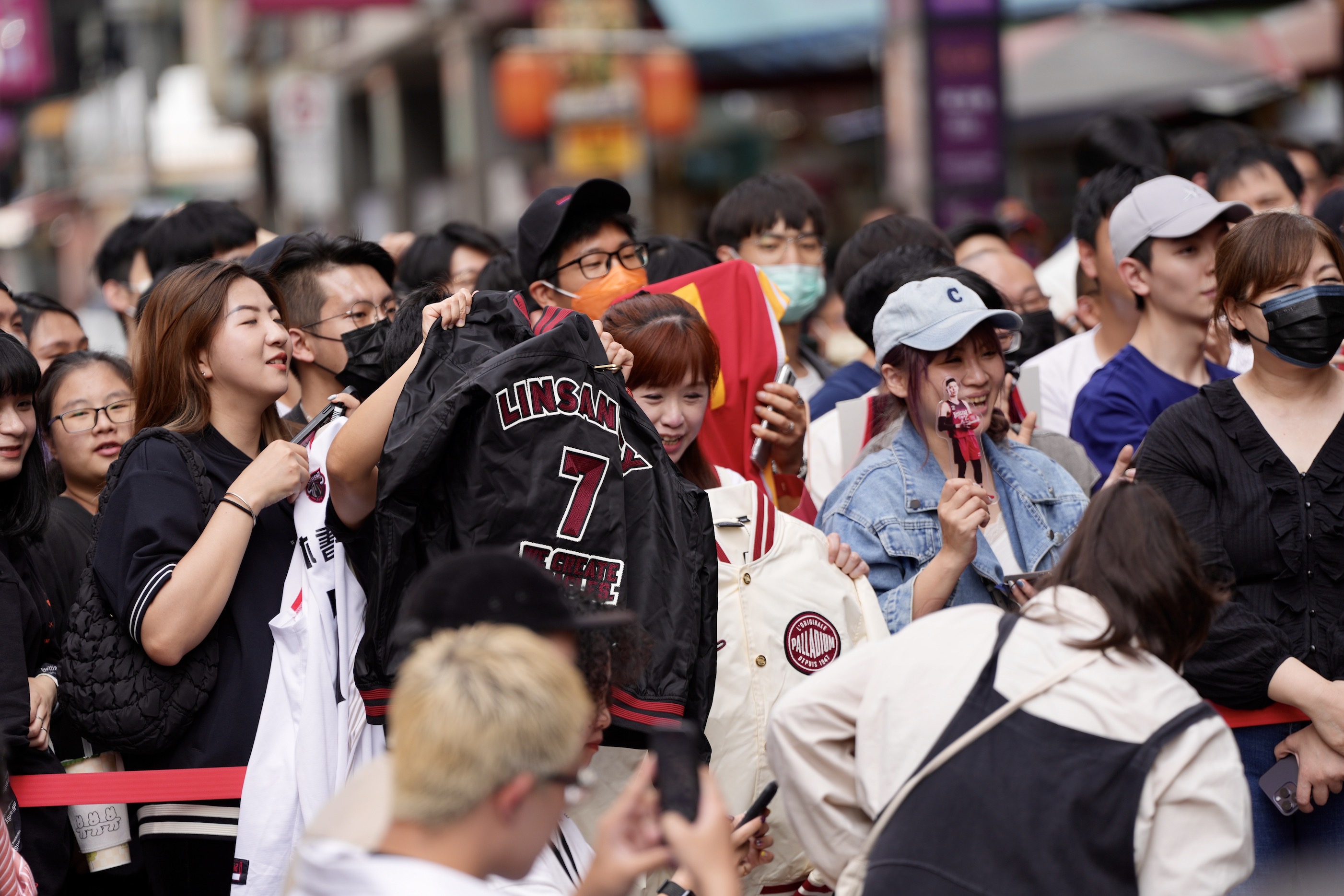 法國軍靴品牌PALLADIUM快閃店開幕活動,吸引大批林書豪球迷。(李宇政攝)