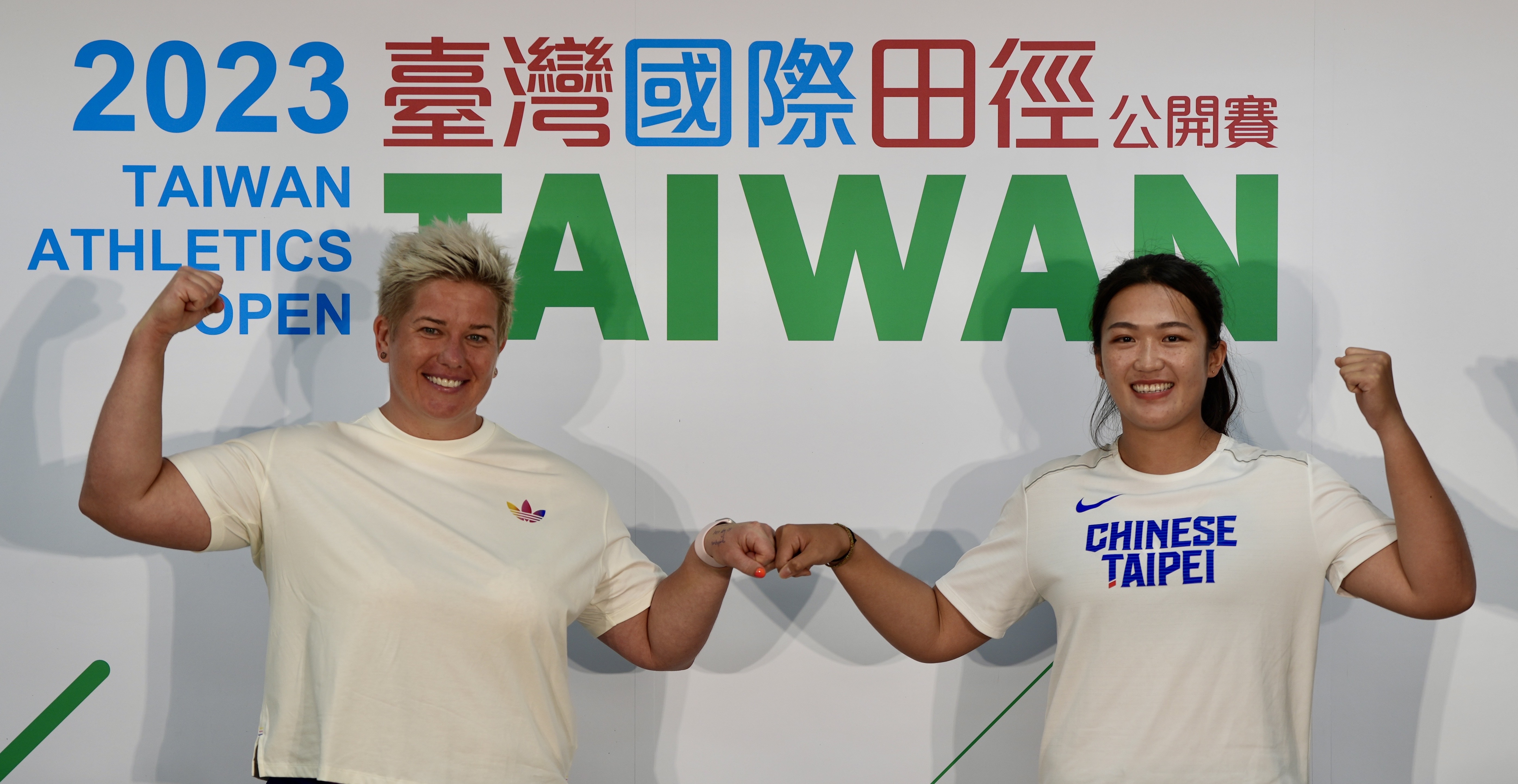 鏈球女王Anita Wlodarczyk受邀來台參加台灣國際田徑公開賽,而台灣女子鏈球紀錄保持人余雅倩今天(26日)一看到偶像,不僅合照、簽名,兩人也相擁打氣,余雅倩勉勵自己,要好好把握機會向偶像請益。