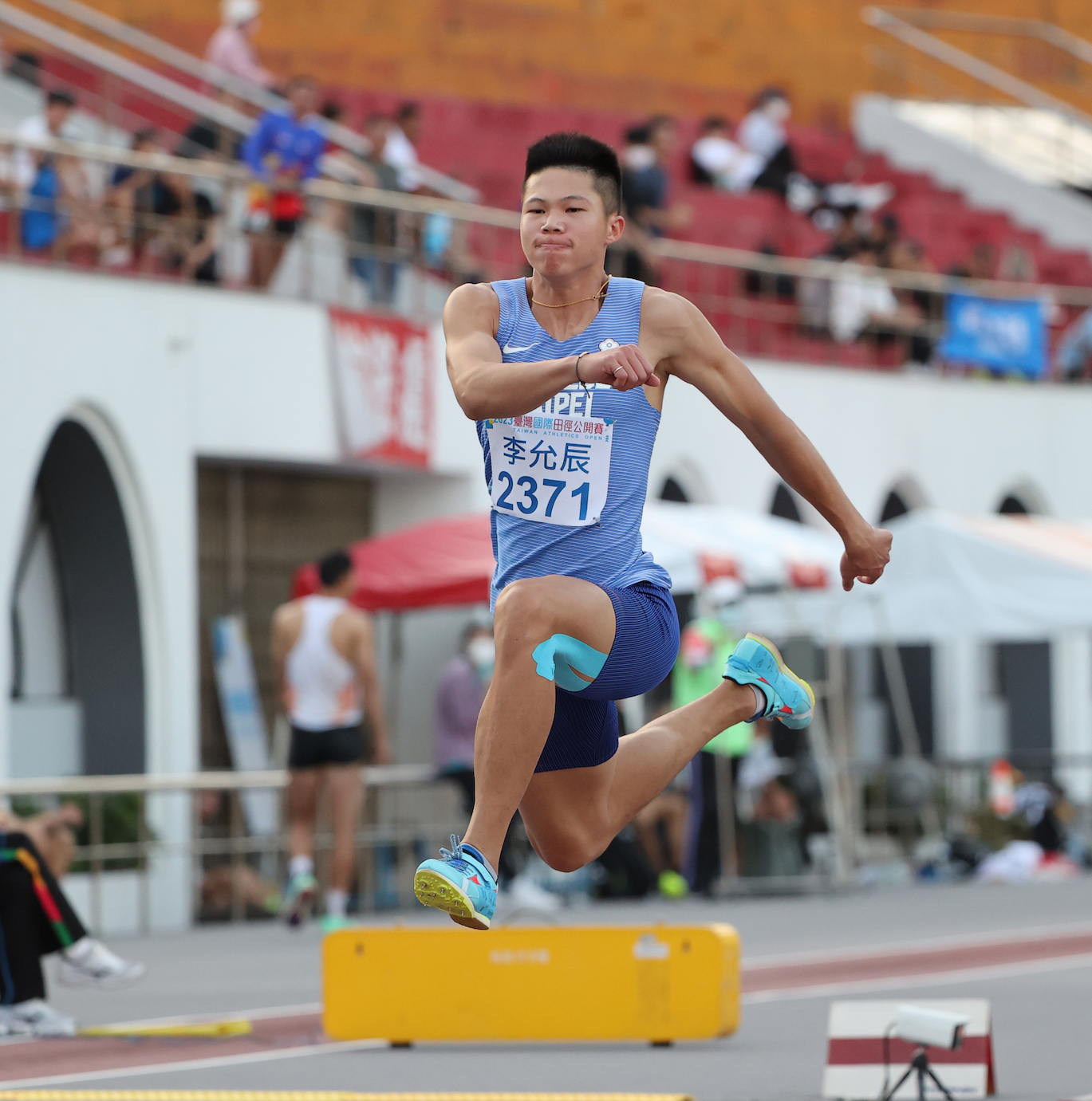 男子三級跳遠賽場上,寶島小將李允辰和韓國選手柳圭玟競爭激烈,在最後兩跳輪流上演反超戲碼,李允辰在前3跳以15公尺95保持領先。