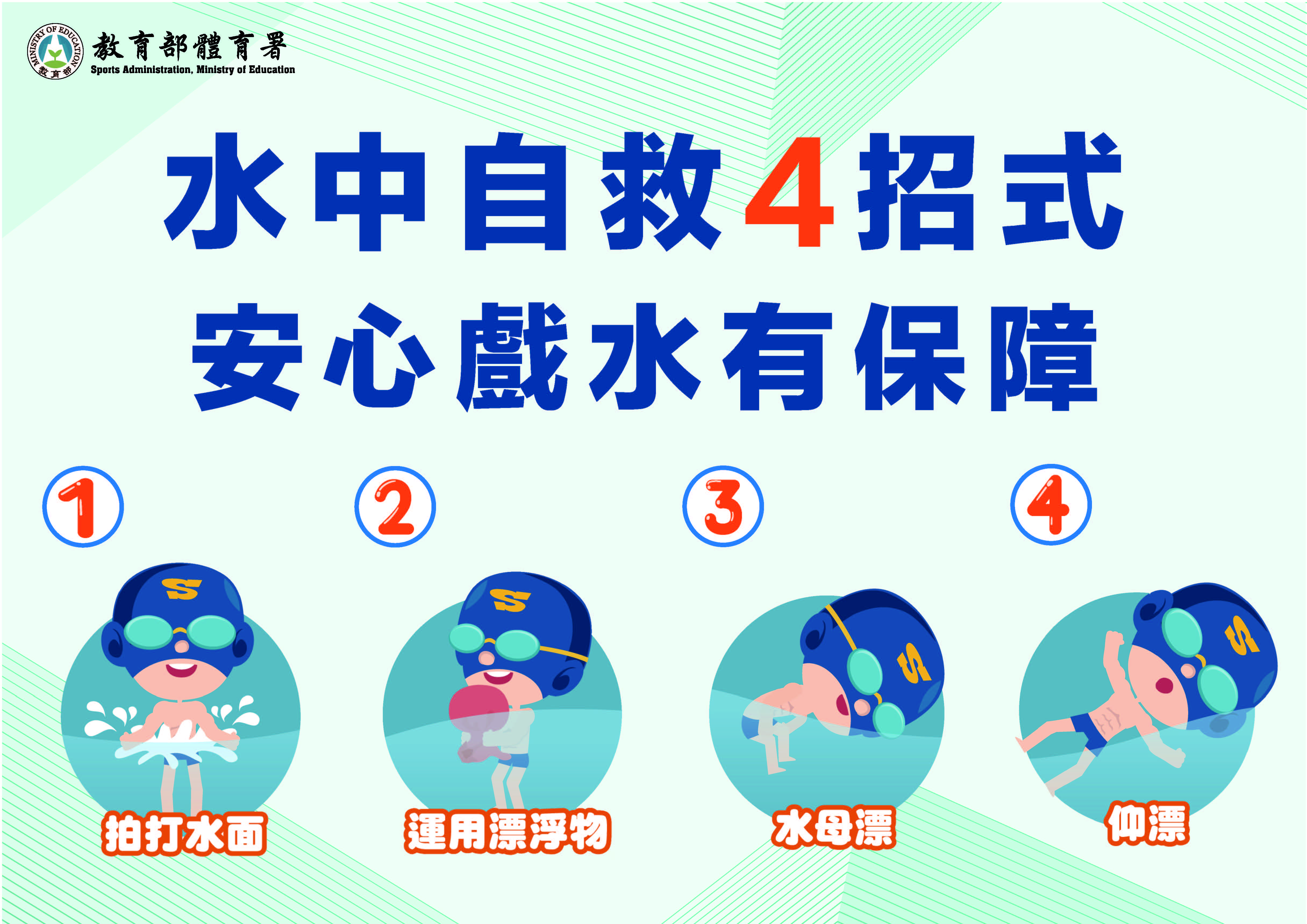 教育部體育署今天(8日)召開例行記者會指出,由於端午節連假和暑假即將到來,夏日戲水多,體育署已通函全國各級學校,要求校方應在假期開始前加強水域安全宣導,並呼籲學生熟練「水中自救」4招式。