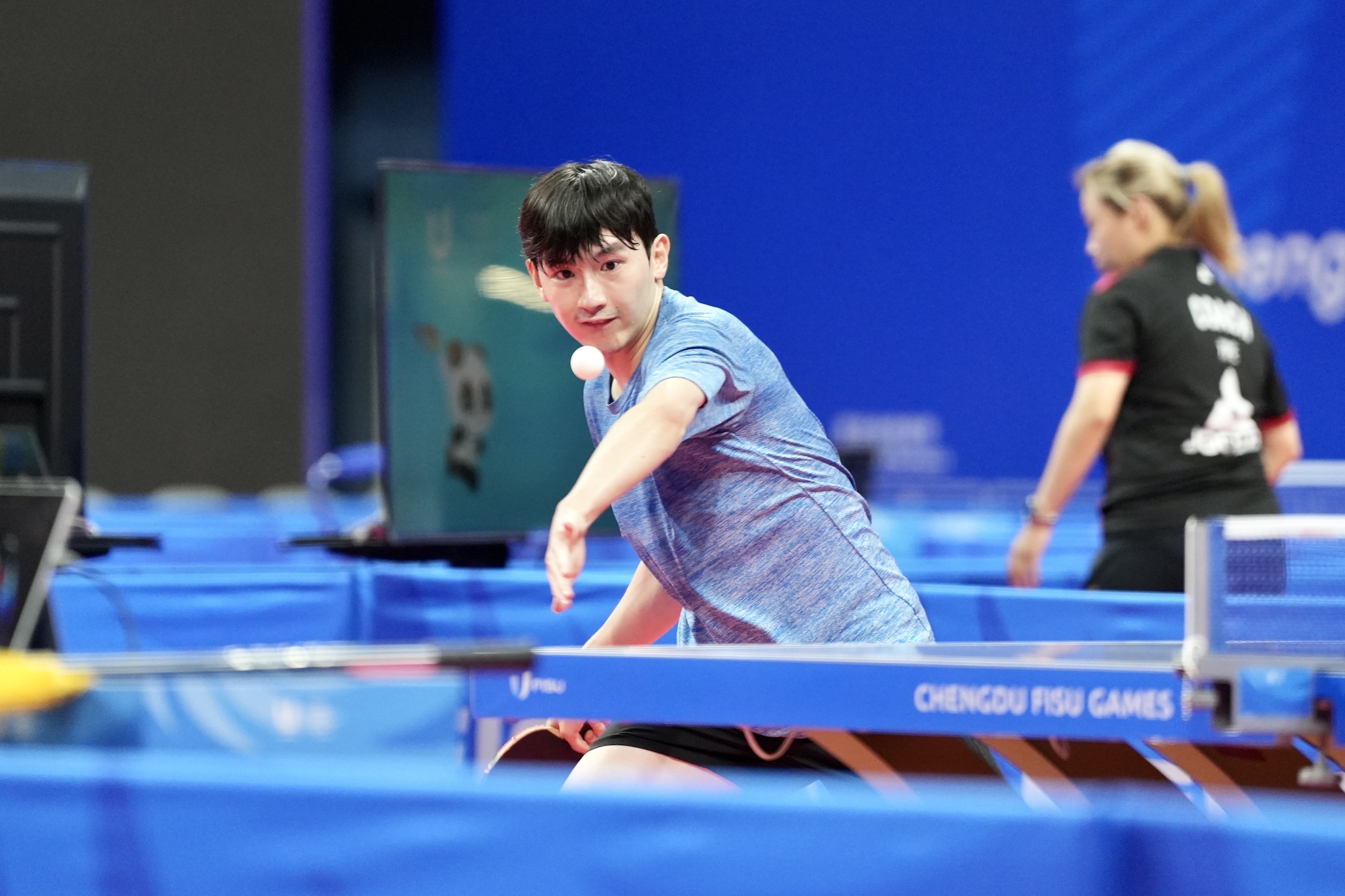 成都世大運中華桌球隊選手黎昕陽。(李宇政攝)