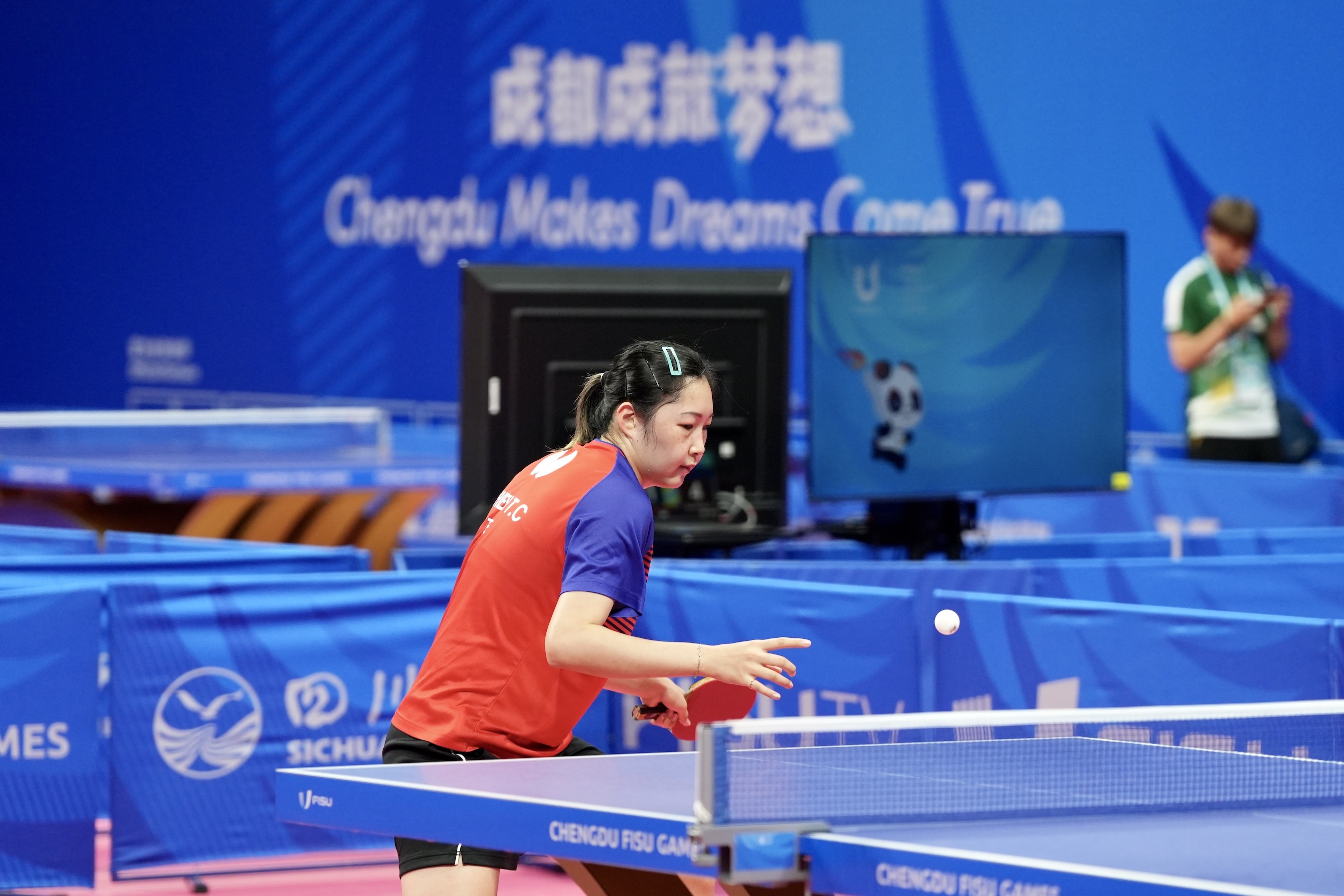 成都世大運中華桌球隊選手簡彤娟。(李宇政攝)