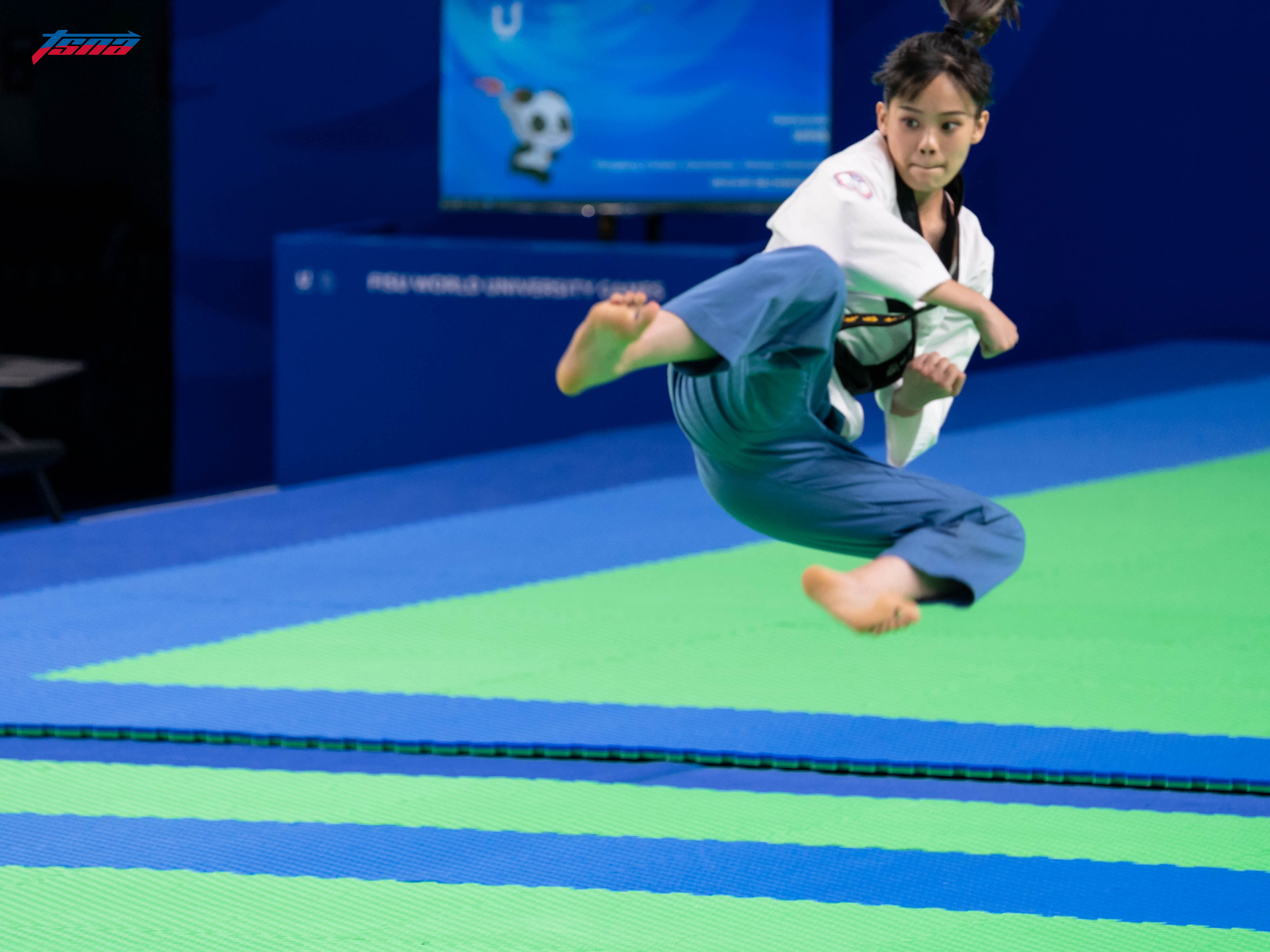 胡子萱高中之前其實是跆拳道對打選手,大學才開始接觸並轉戰品勢。(劉柏毅/攝)