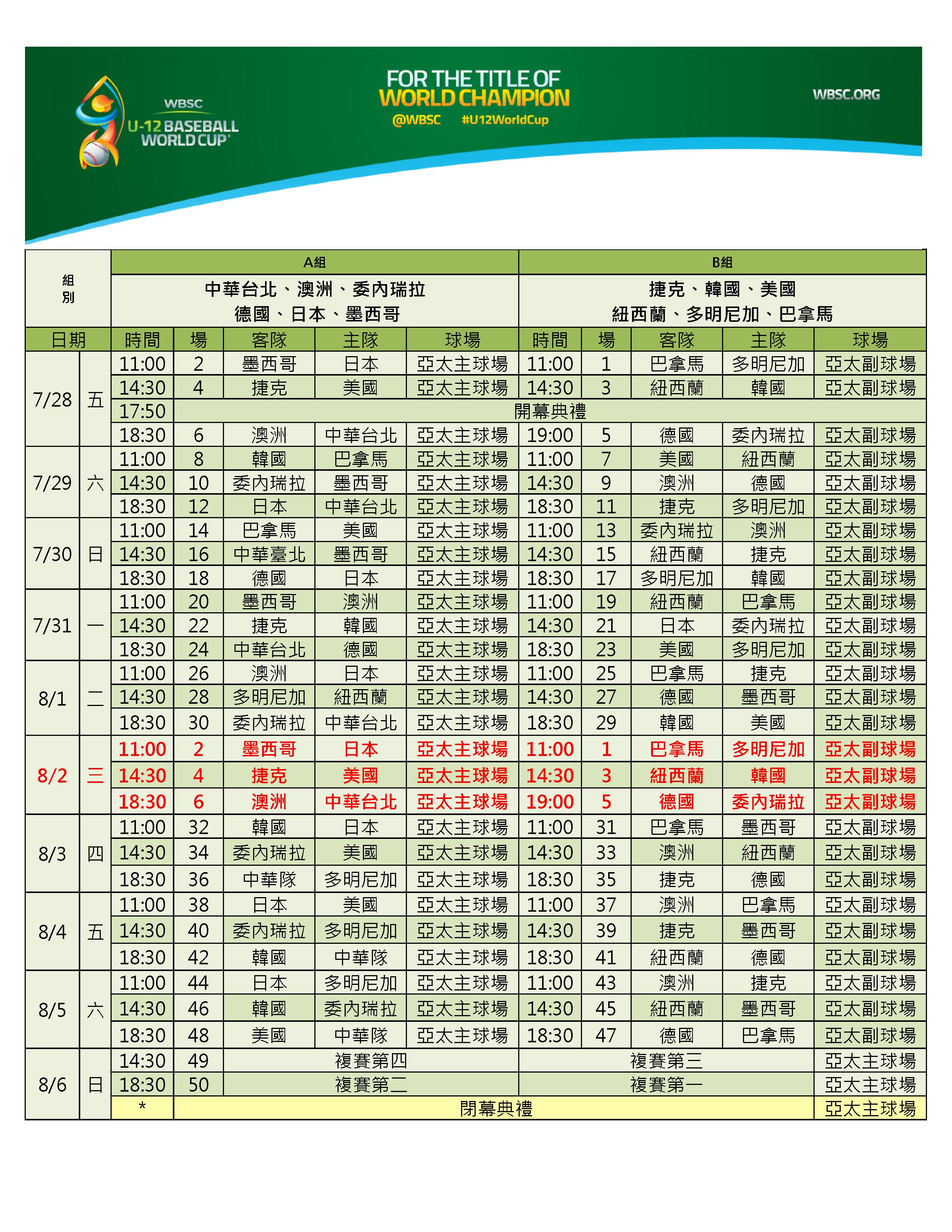 賽程表。中華棒協提供