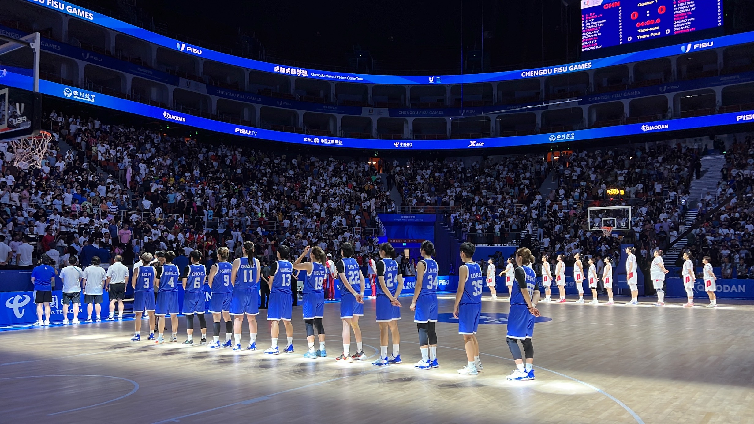 成都世大運女籃4強賽,中華隊和中國隊昨天(3日)在鳳凰山體育公園冰籃球館進行,記者一踏進場館,感覺有台北小巨蛋的氛圍,女籃球員羅蘋也認為,「對,沒錯,我覺得比小巨蛋還小巨蛋呢!」