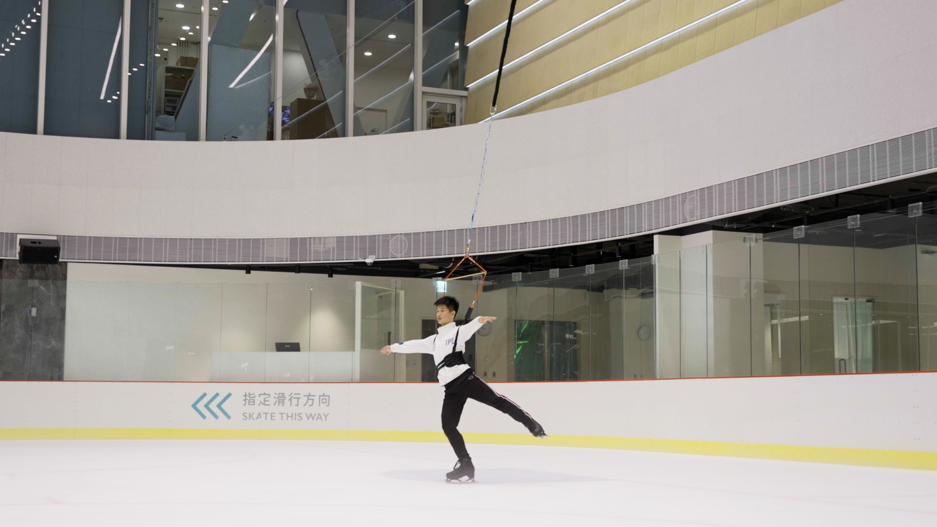 李宇翔使用冰上懸吊系統輔助訓練。(攝影/劉勁宏)