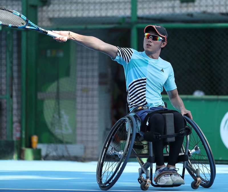 去年勝利盃國際輪椅網球台灣公開賽男雙冠軍的唐兆漢,今年首戰便鎩羽而歸。 (大會提供)