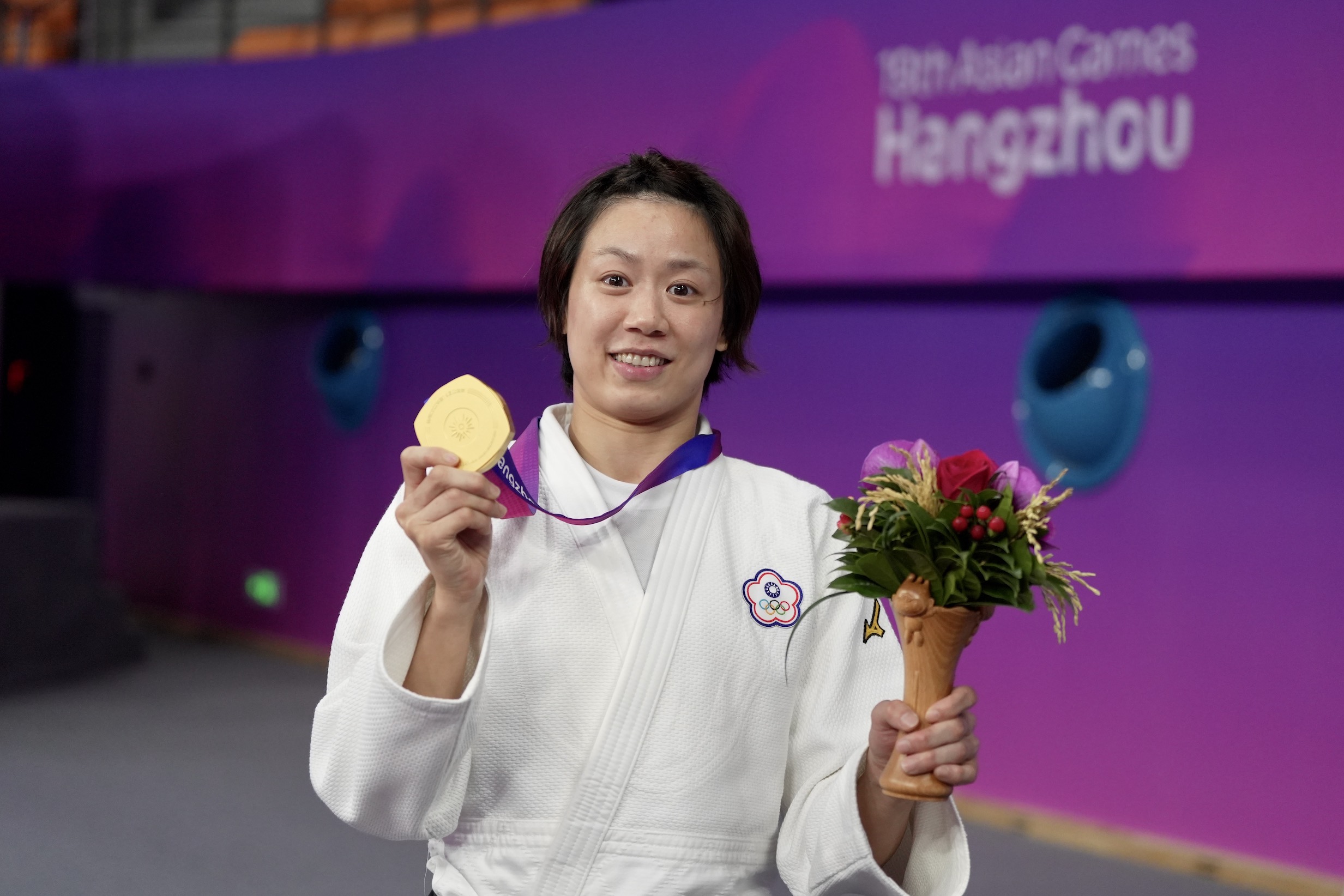 連珍羚獲得杭州亞運柔道女子57公斤級金牌。(李宇政攝)