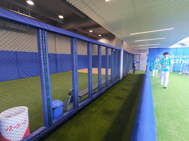 紹興棒球場牛棚區在室內。(圖/記者蕭保祥攝)